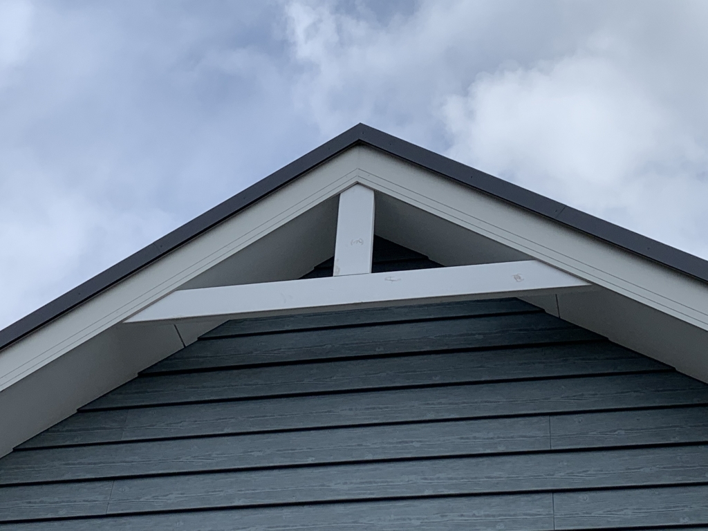 切妻屋根(三角形状の屋根)の場合に限っての話になるが、三角の頂点(妻)部分に飾りがあるかどうかは重要な問題と言える。また、家のデザインによっても使い分けが必要となる。