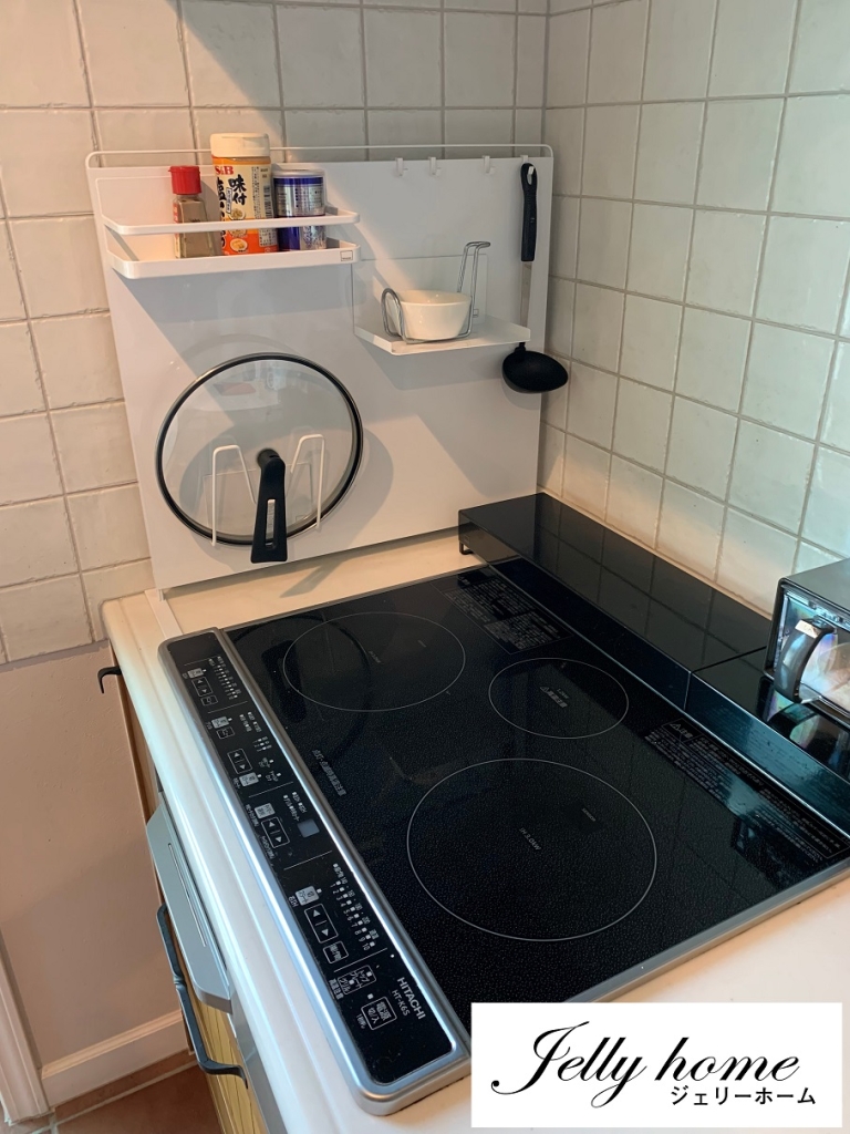 特に我が家の場合は壁がタイルのため、引っ掛けフックや調味料ホルダーを壁を傷付けずに
