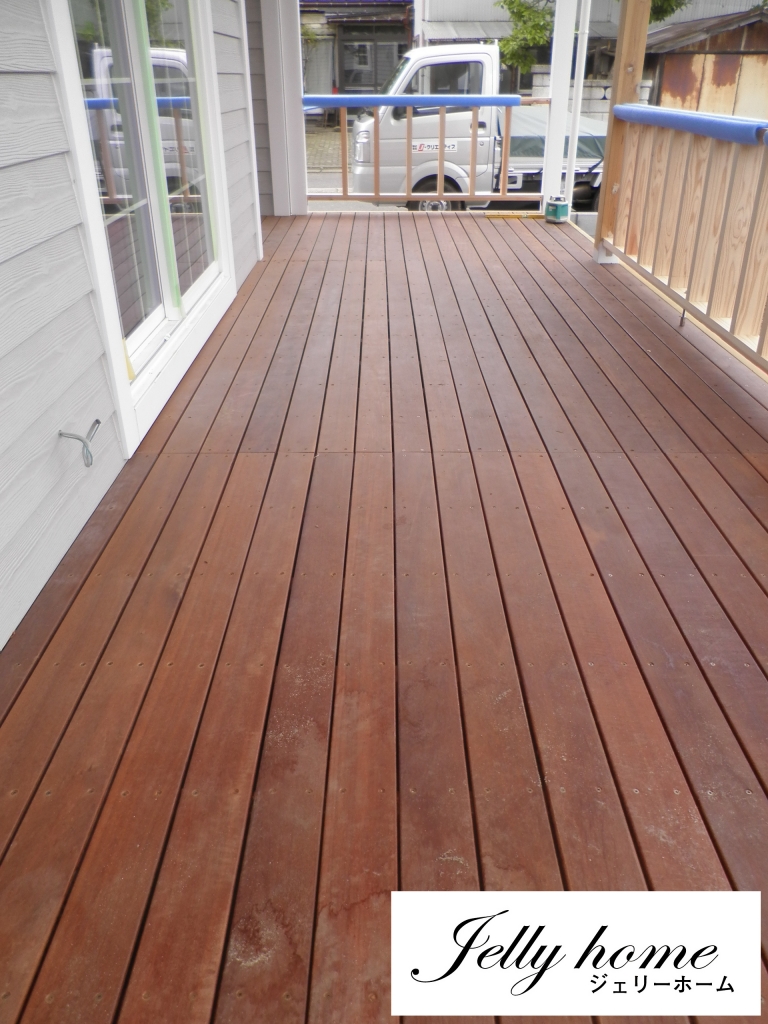 まるで西部劇映画のような雰囲気はウッドデッキにしか出せない味わいかも知れないが、ハードウッド材とは言え、木には違いないので、耐久性を重要視するならタイル張りデッキがお奨め。