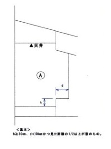 床面からの高さは30㎝以上で、周囲の外壁面からの水平距離は50㎝未満、かつ見付面積の1/2以上が窓であるものに限られます。