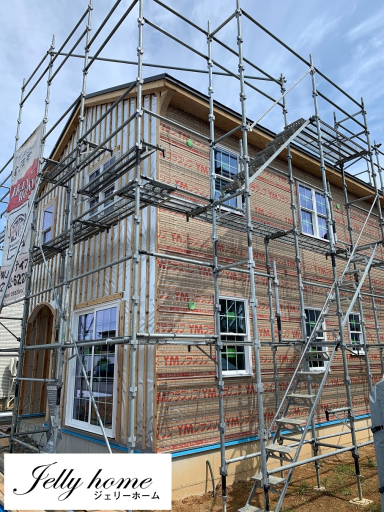 通気胴縁工法用の塗り壁下地「リブラス」の施工が始まったプロヴァンスの家。