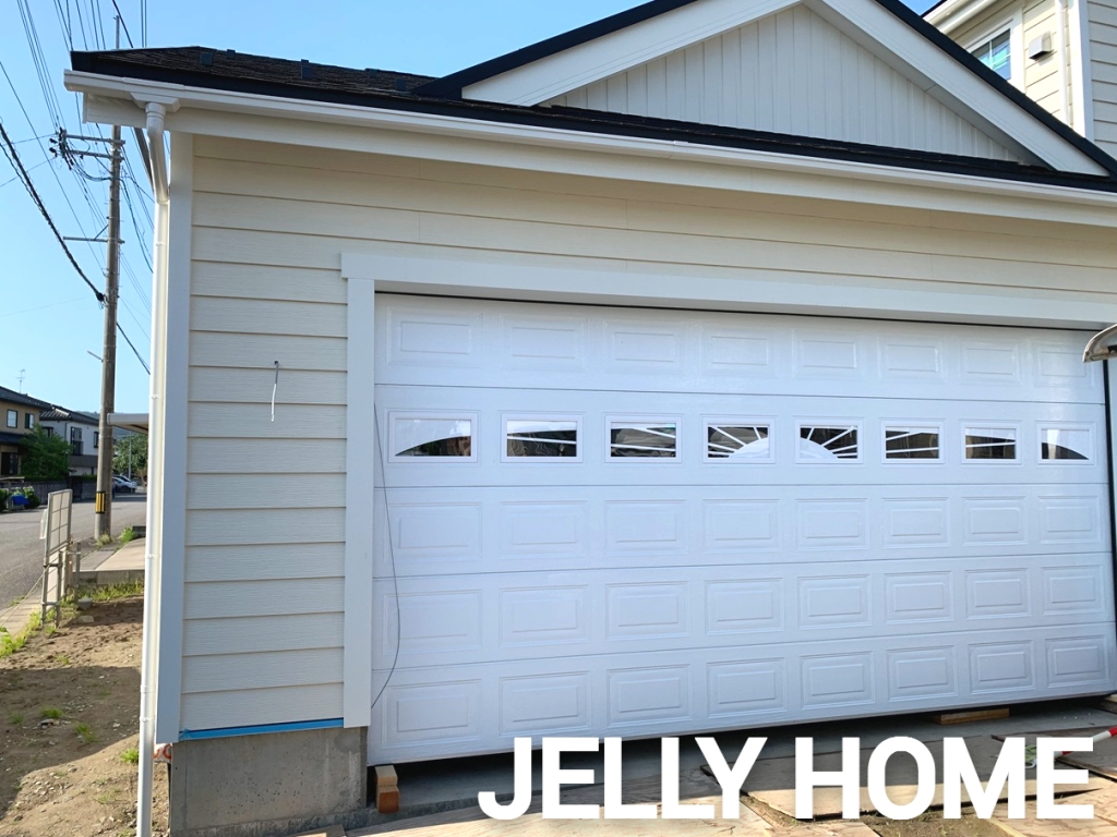 ガレージシャッターが付いただけで、外観の印象が見違えるほどカッコ良くなったアメリカンハウス。