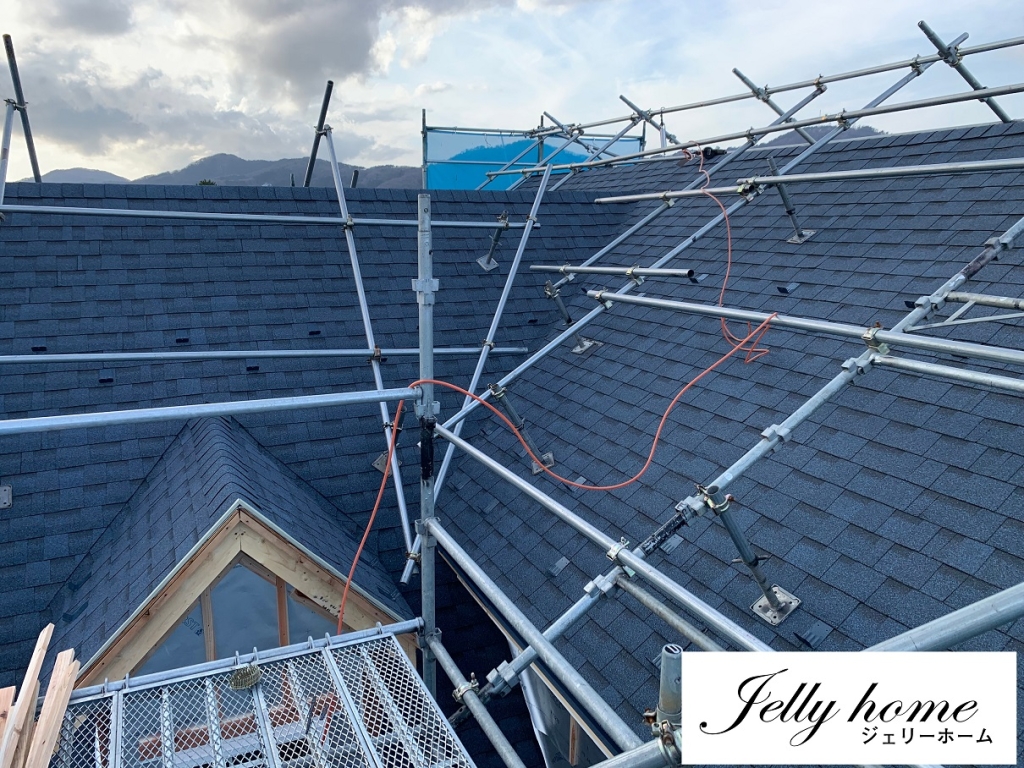 お陰でアメリカンハウスの屋根工事は一気に進み、一番の難所の急勾配屋根が入り組んだ部分が出来上がった。