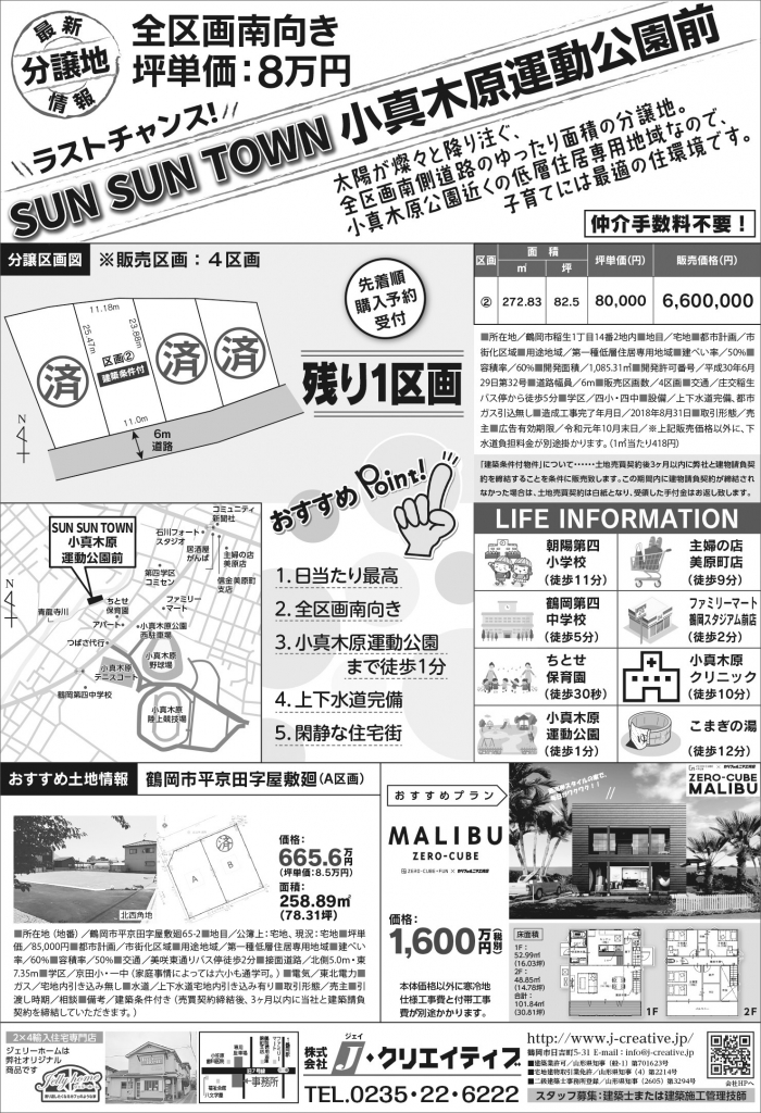 鶴岡市稲生1丁目で売り出し中の当社分譲地「SUN SUN TOWN小真木原