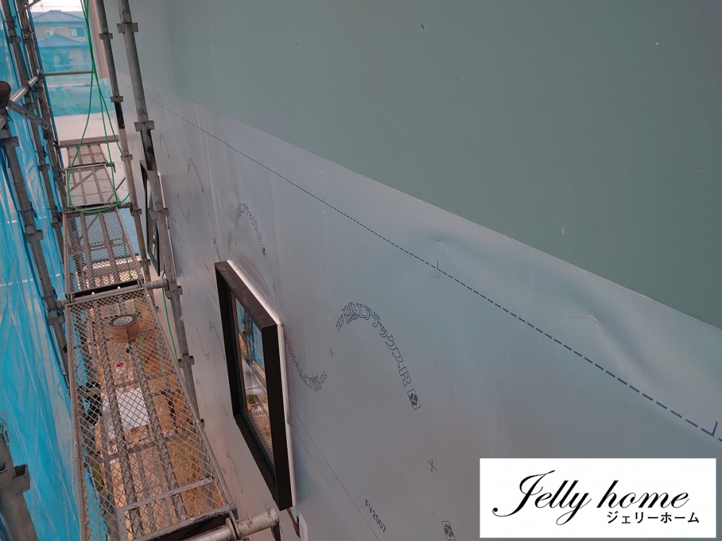 ZERO-CUBEウェアハウスの工事の方は、窓の取付が終わると、すぐに合板の上に防水石膏ボードを張り付けて、その上から防水放湿シート(タイベックシート)を張る作業に入っている。