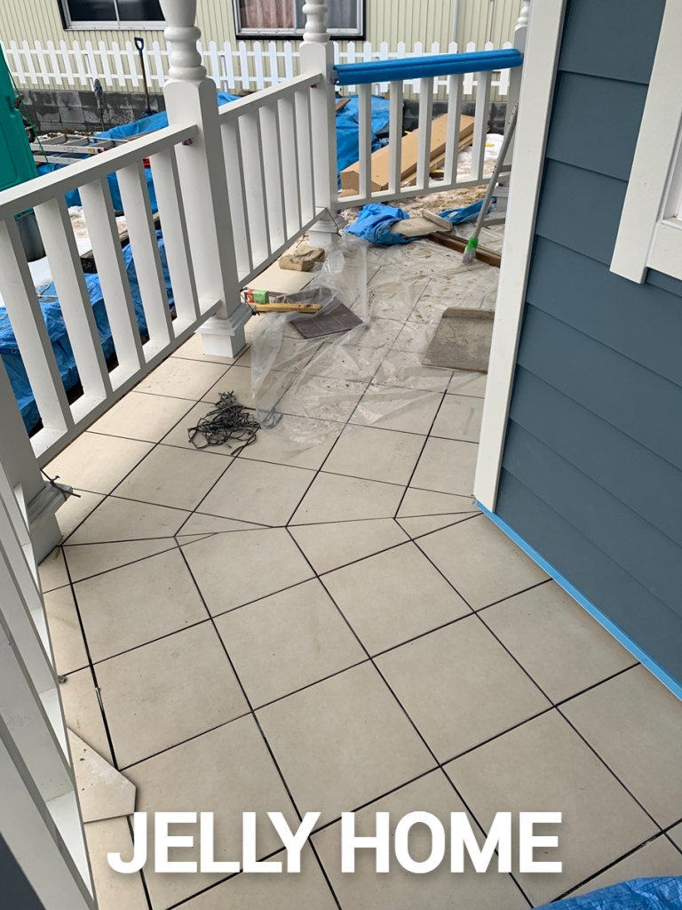八角形のポーチだけにタイルの貼り分け方が難しく、左官屋さんには大変なご苦労をお掛けした。