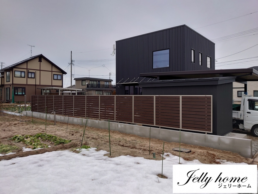敷地の南側と西側は畑のため日当たりが最高に良く、建物と一体化になった外構部分も一際目立っている。