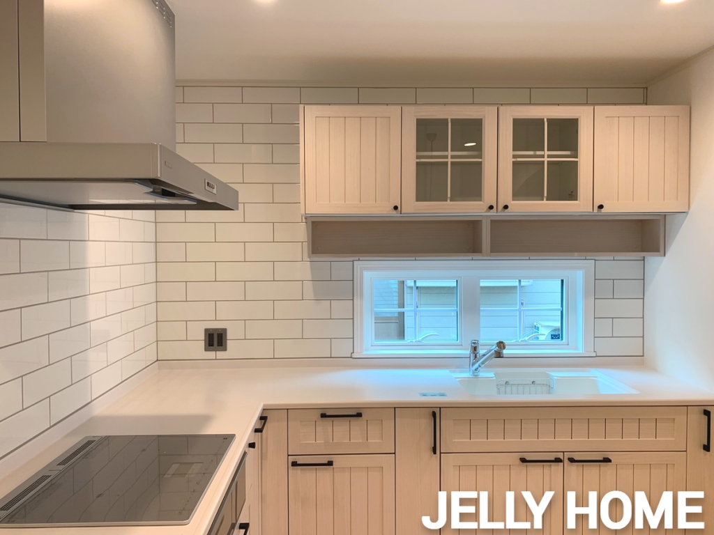 今月20日と21日に鶴岡で開催する「ガレージ付きアメリカンハウス」では、お施主様のこだわりもあって、アメリカでは主流のL型キッチンを採用している。