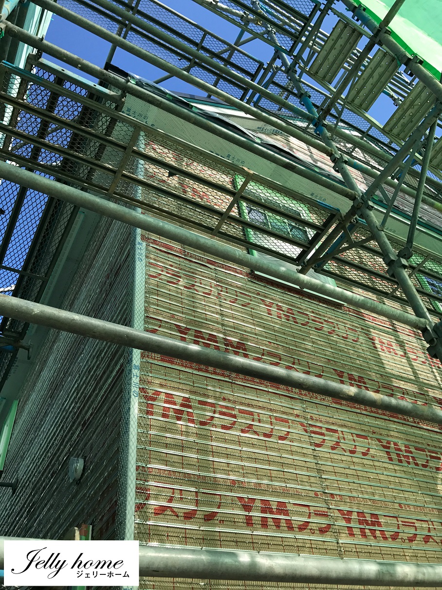 外壁塗り壁の下地となるラス貼りを既に終えていた。