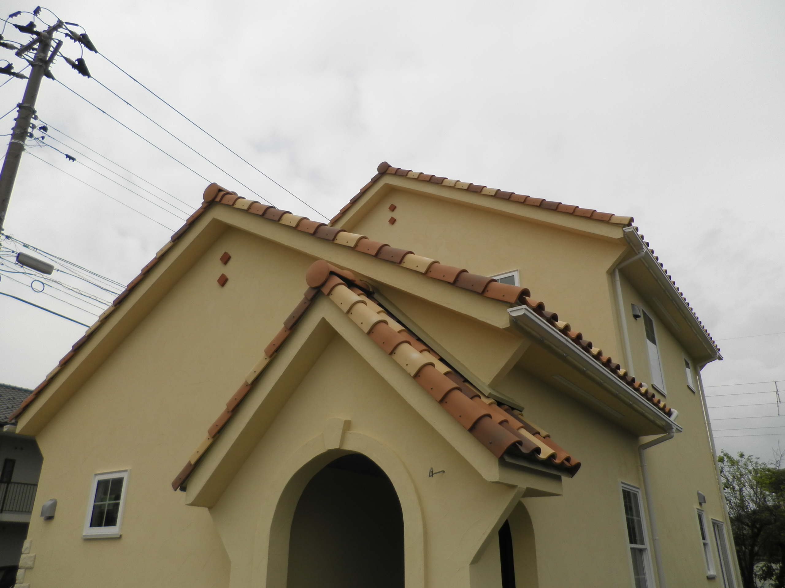 スタッコの塗り壁にS瓦のコンビネーションはこの辺ではあまり見かけないせいか、