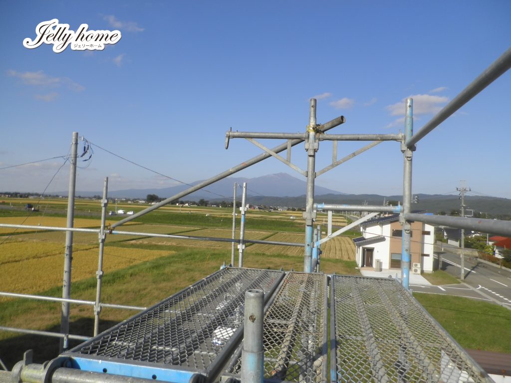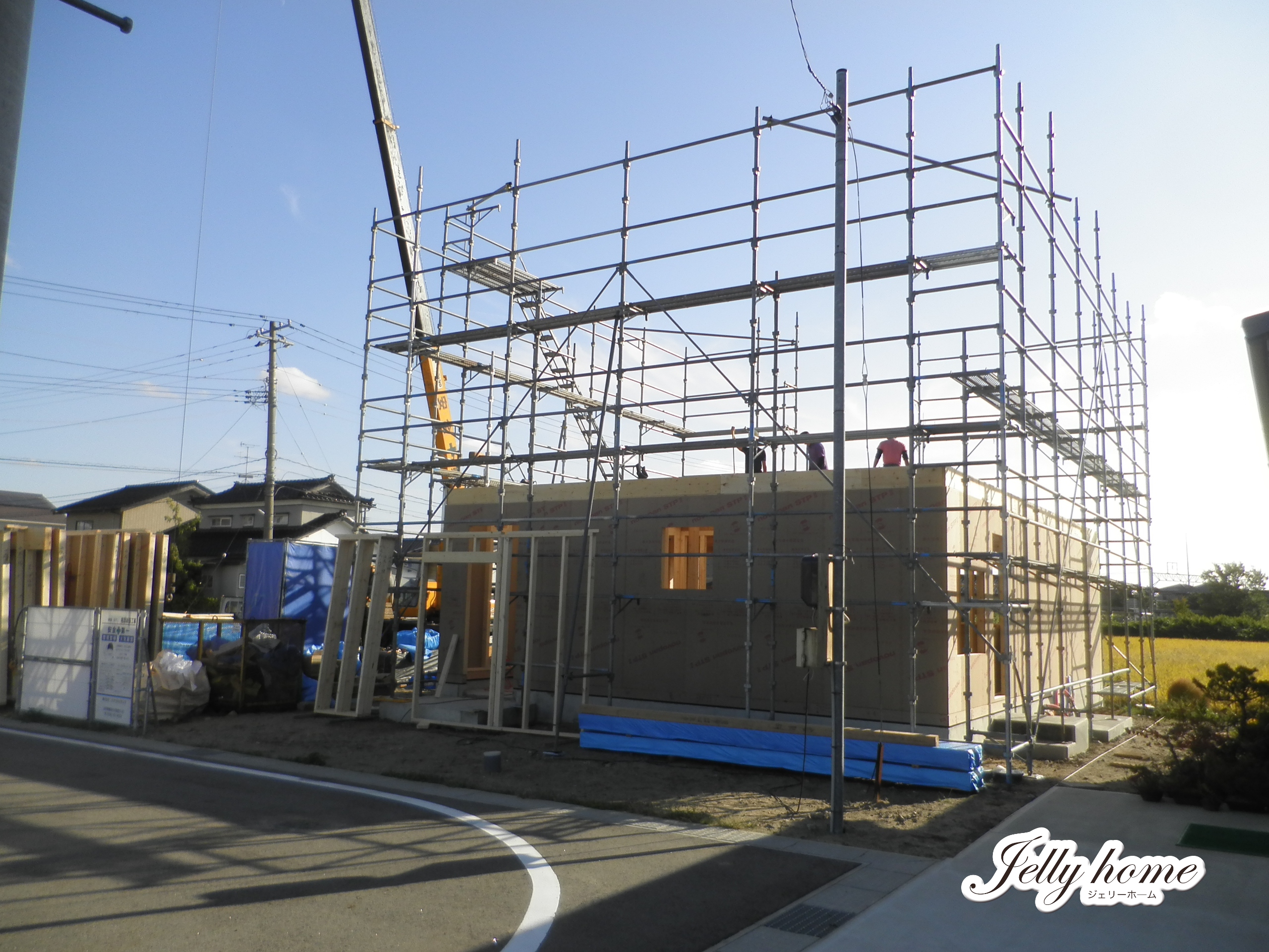 好天の中、酒田市砂越で始まった「ゼロキューブ」の建て方。