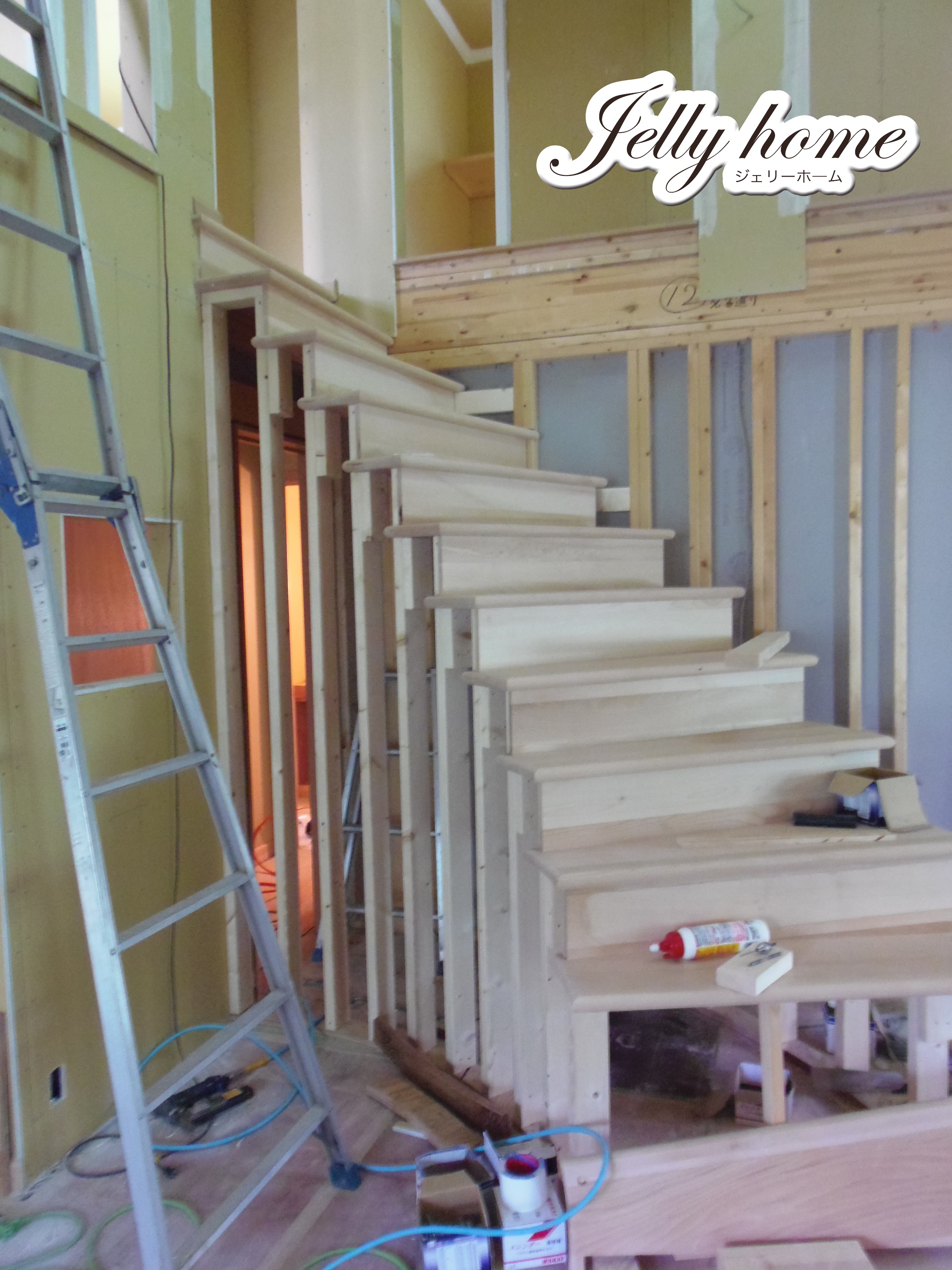 これが見せ場の一つなんですが、普通の階段と違って組み立てるのがかなり難しいんです。