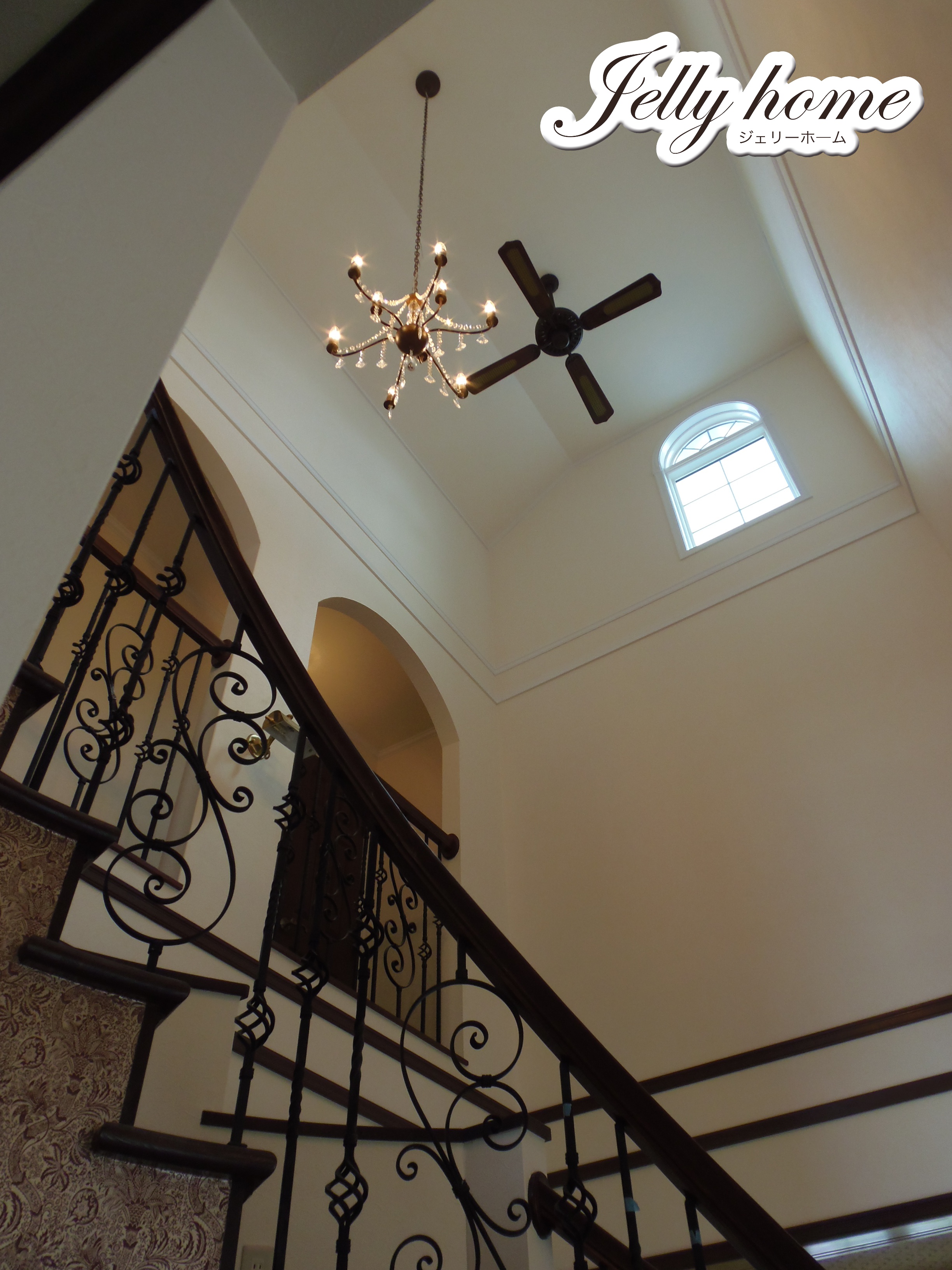 シャンデリアや天井ファンにもとてもよく馴染んでいます。