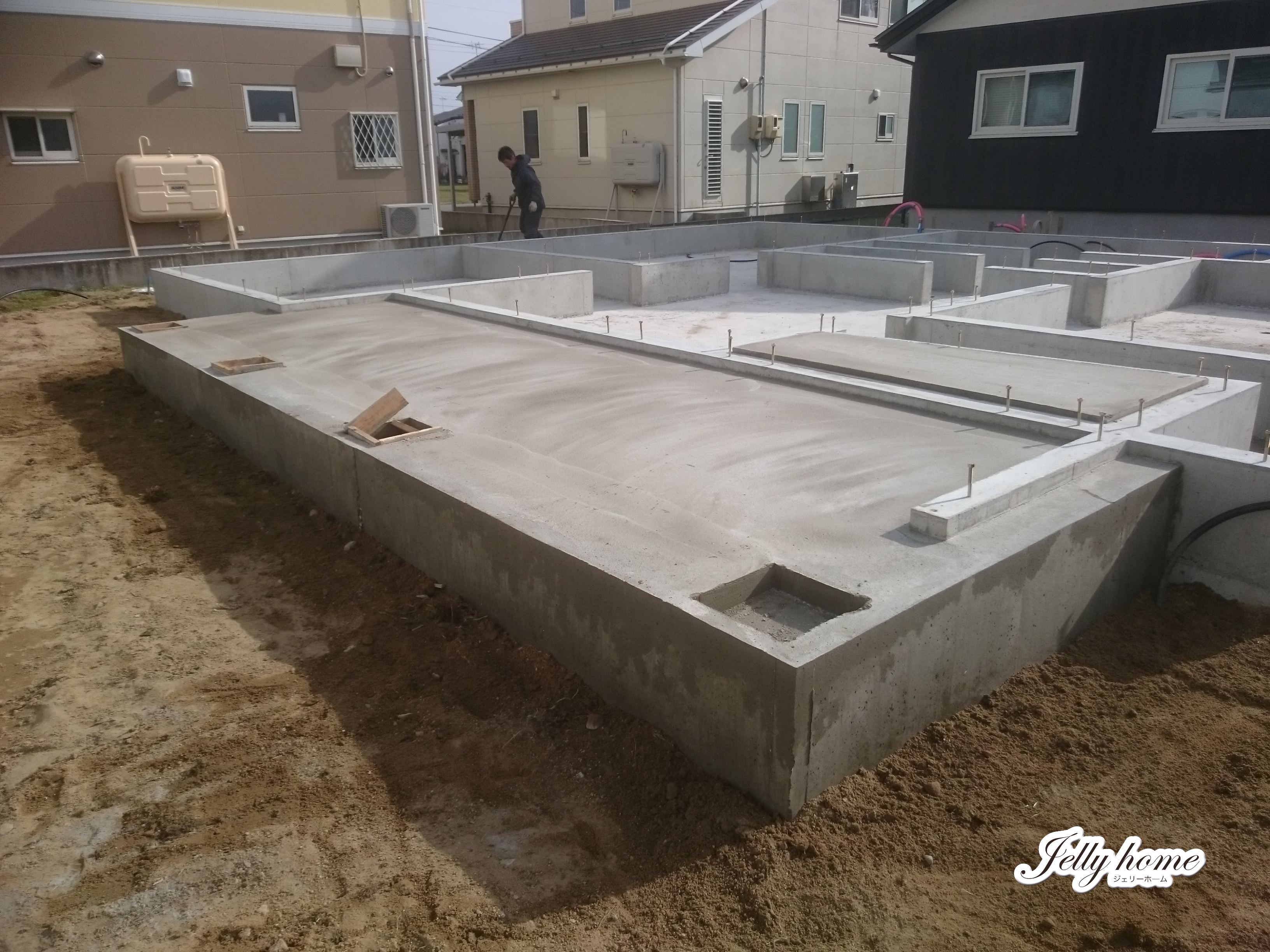 アメリカンタイプの鶴岡市K様邸はベタ基礎工事がほぼ完了し、