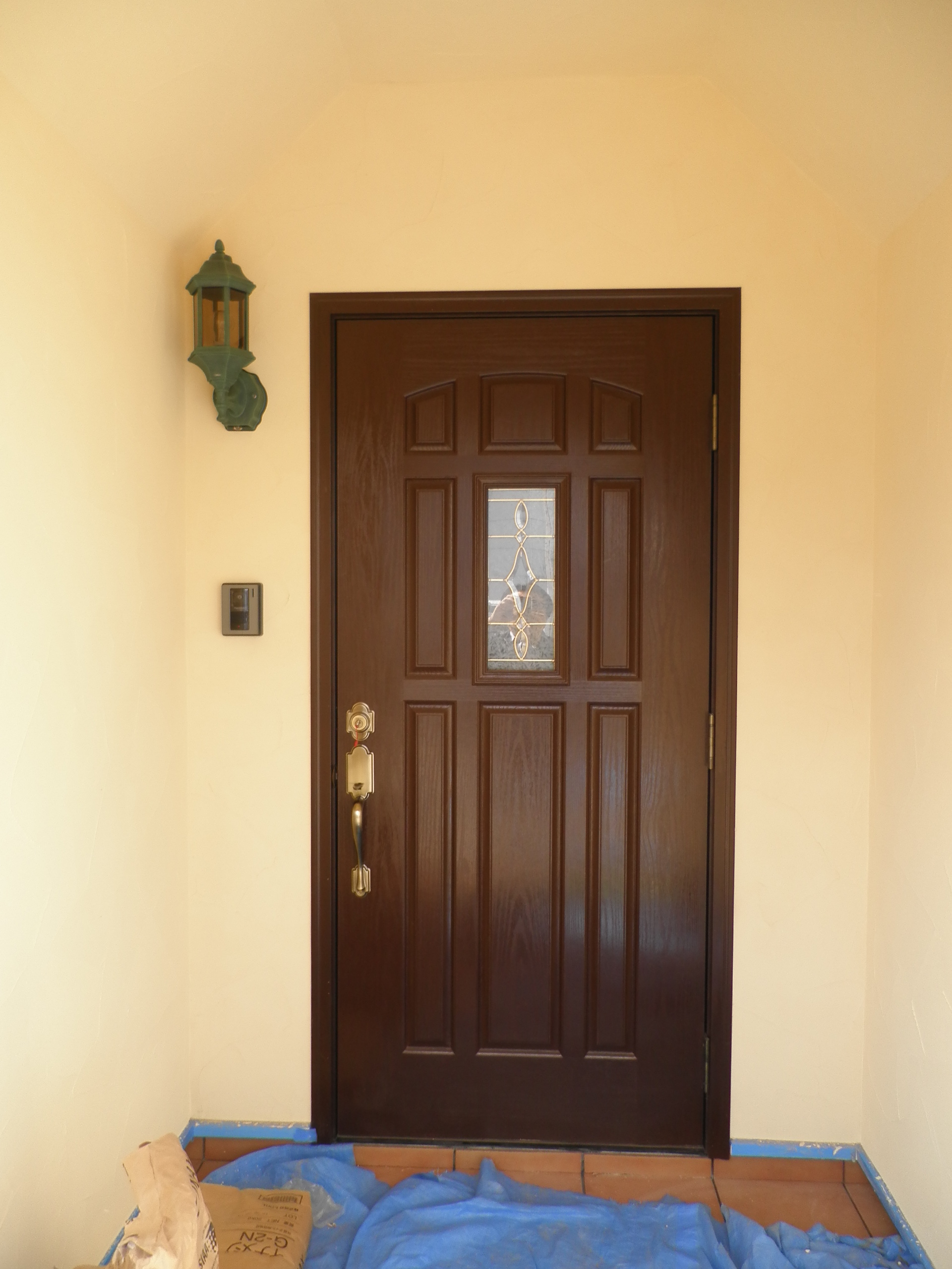 塗装仕上げを終えたグラスファイバー製の玄関ドアは、