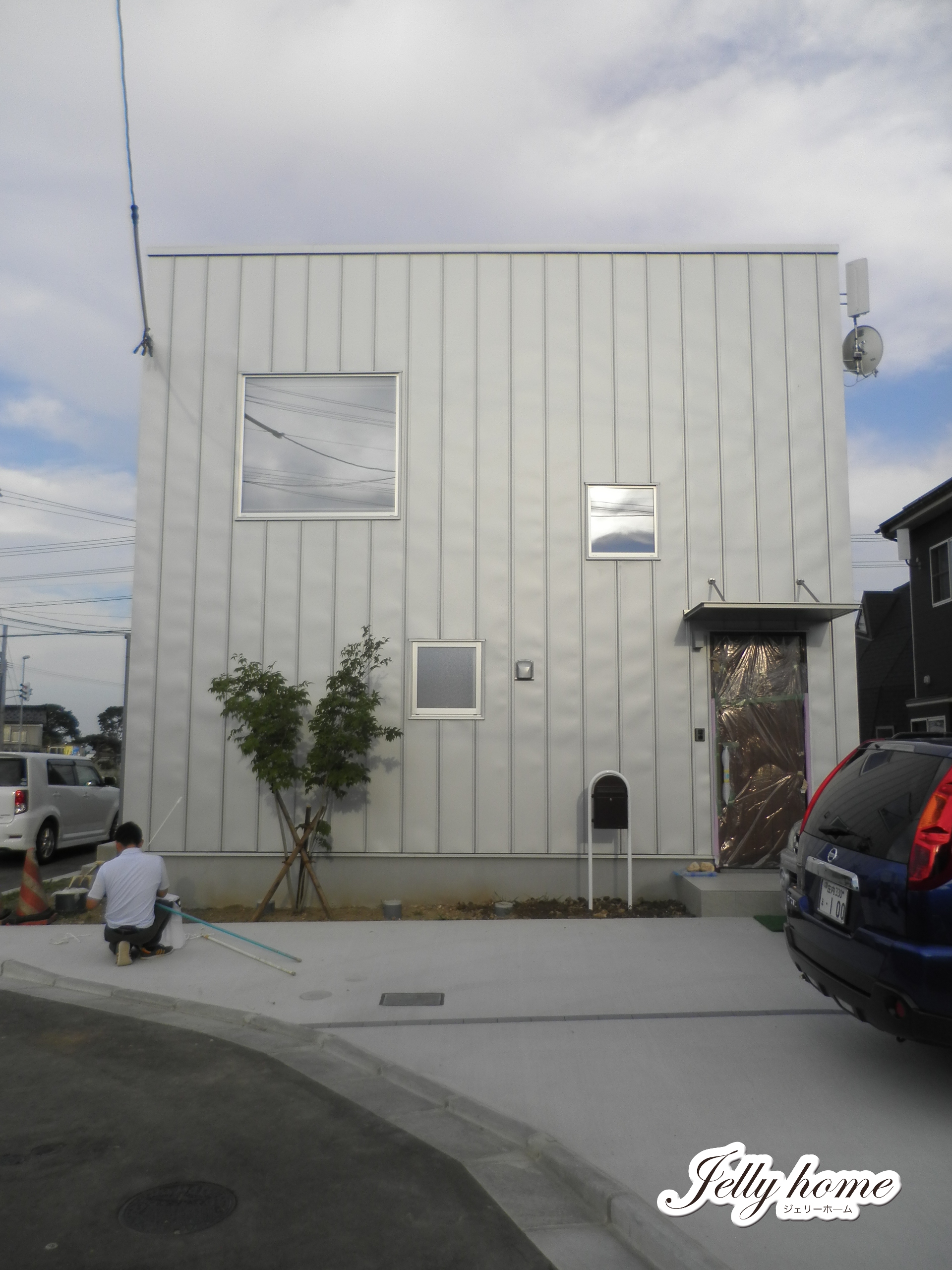 シルバー色の外壁も中々お洒落と、
