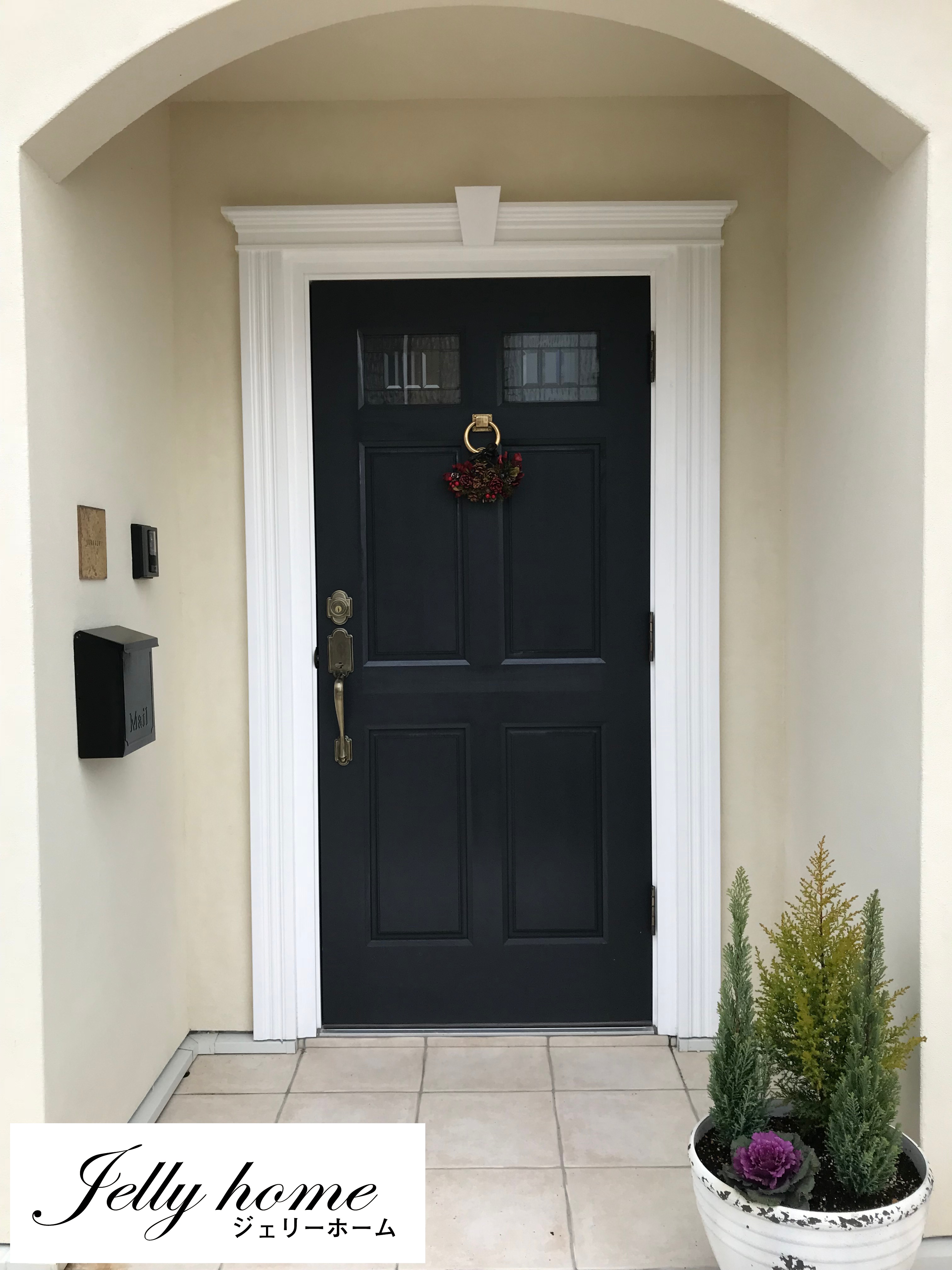 玄関ドアには可愛らしいリースが飾り付けれていた。