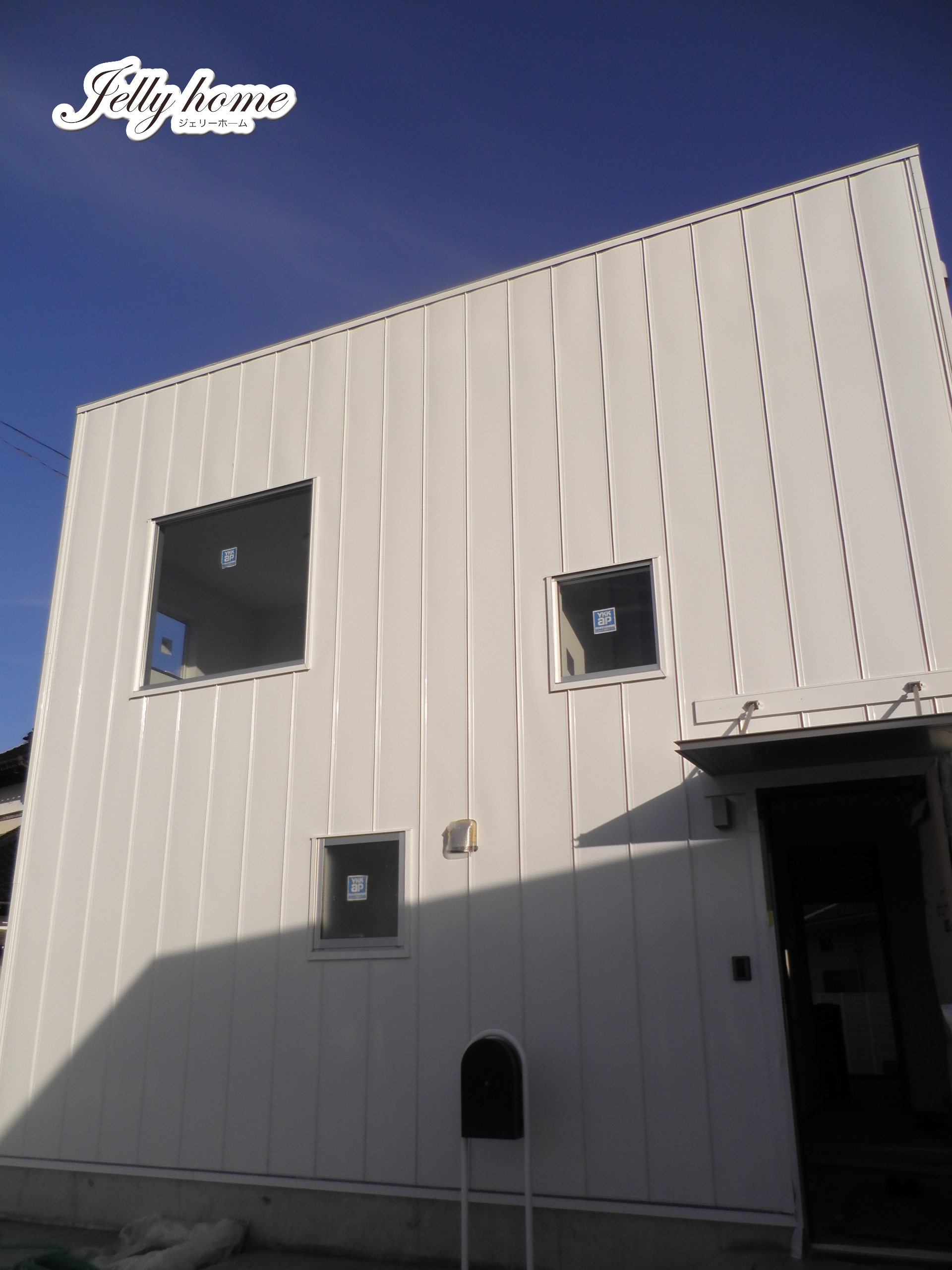 玄関上の庇も付いて、外観は完全に整ったゼロキューブ。