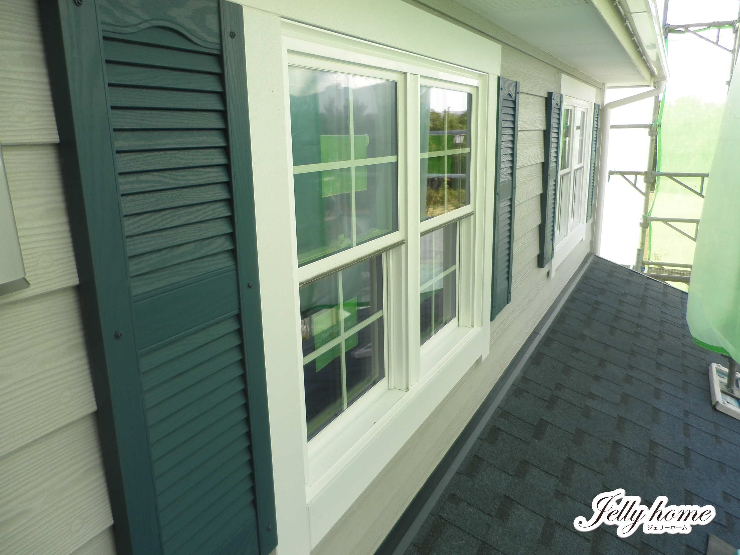 鶴岡市内で工事中のK 様邸は窓周りの飾り雨戸が取り付けられ、