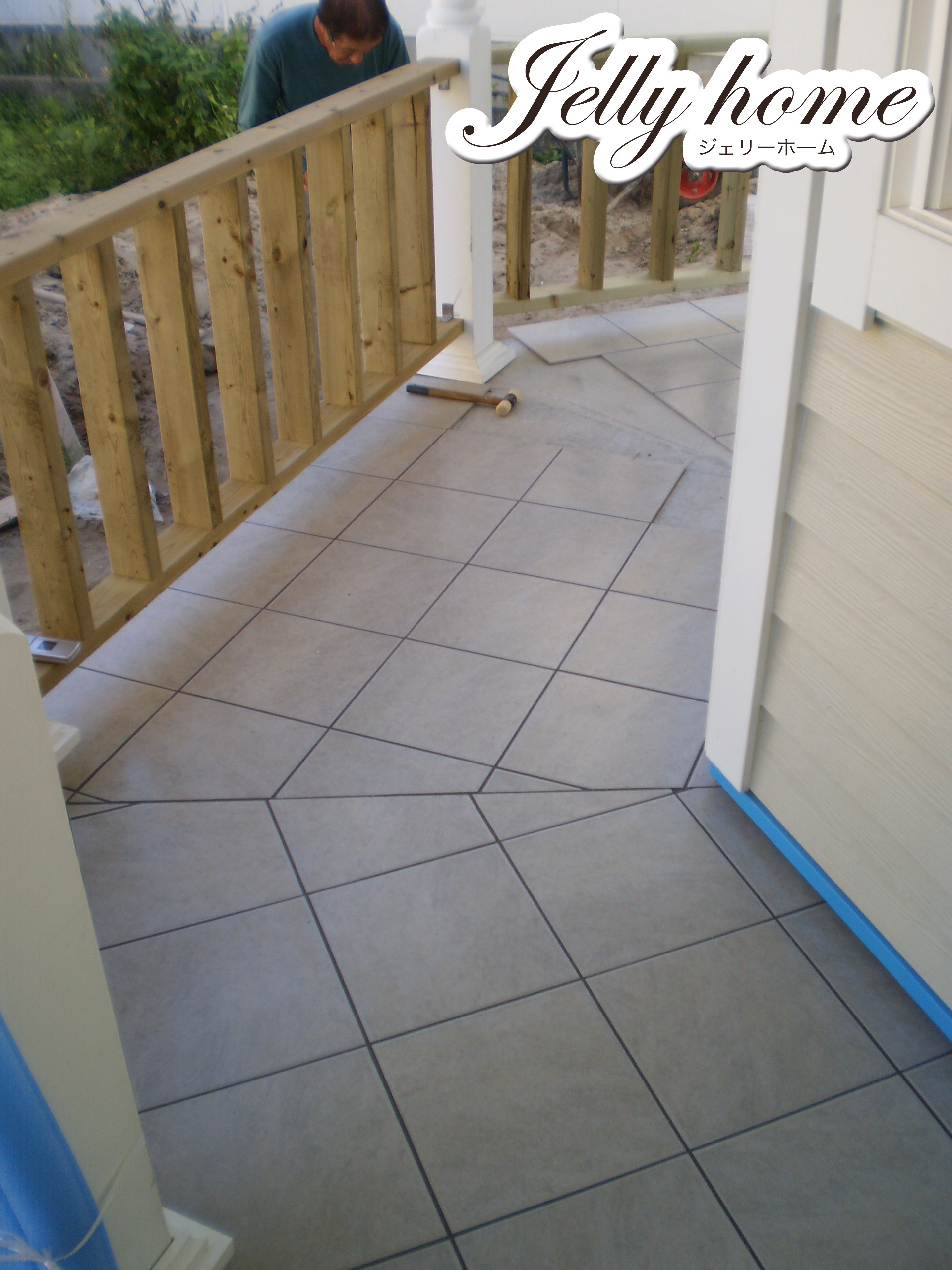カバードポーチの床仕上げは、もちろんノンスリップタイルです。