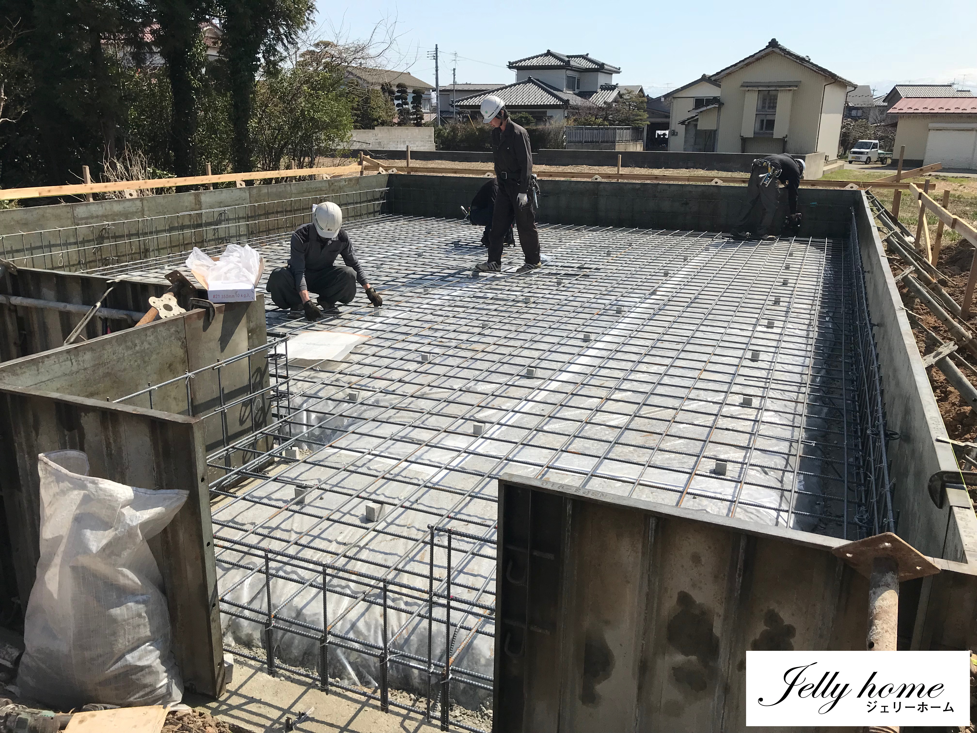 鶴岡市のW様邸は職人さんが配筋の作業中。