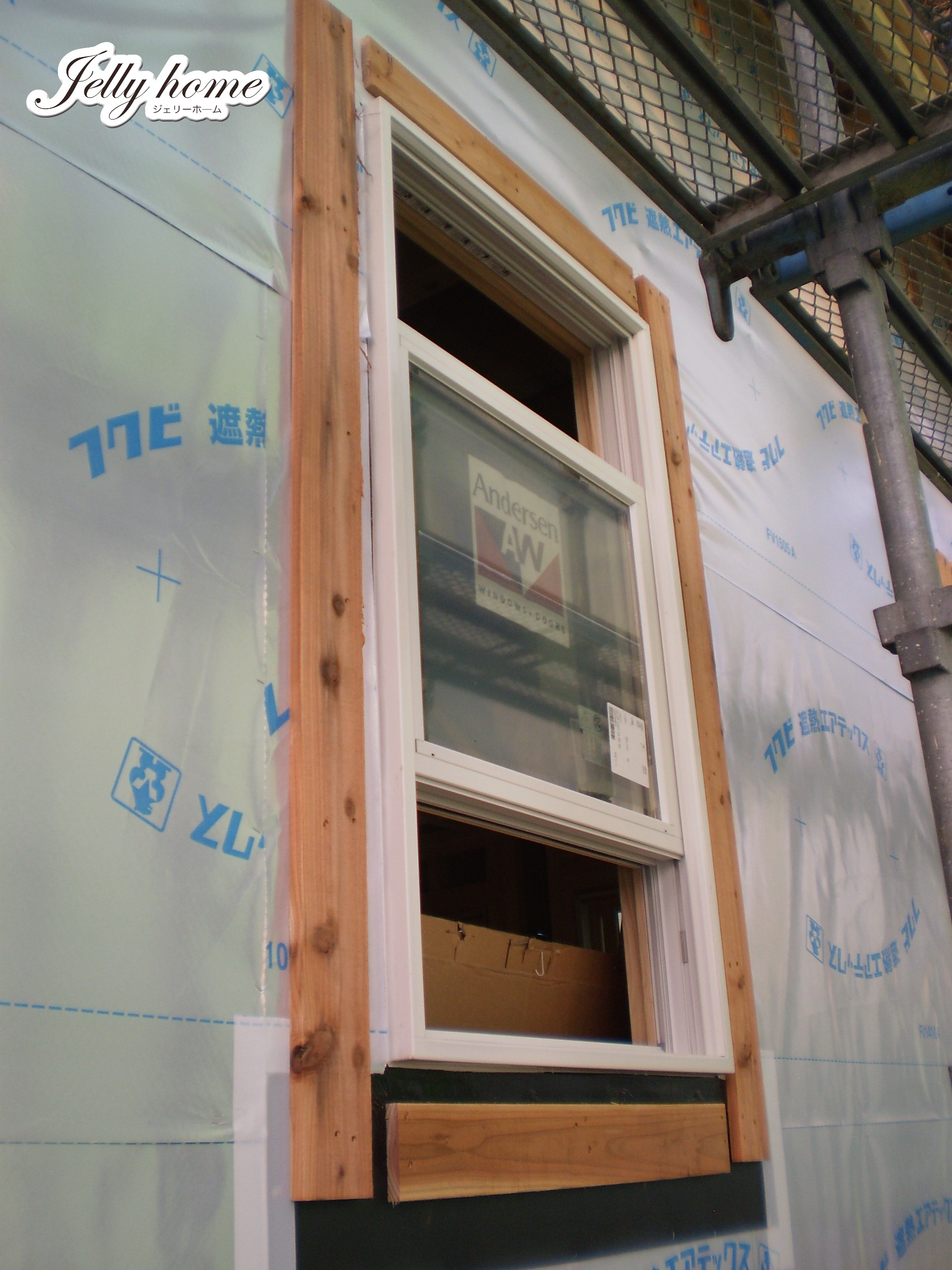 北欧スタイルを建築中のS様邸は、窓と玄関ドアの取付を完了。