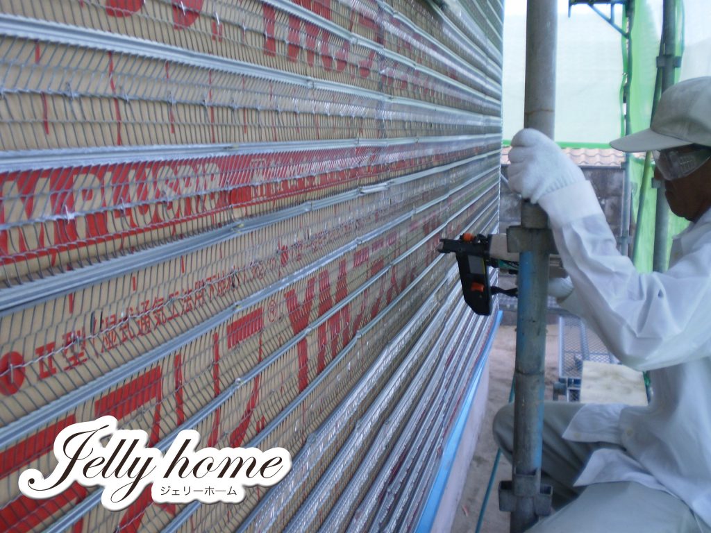 当社では下地用ラスに「リブラス」を採用し、モルタルが崩れないように強力な接着力を
