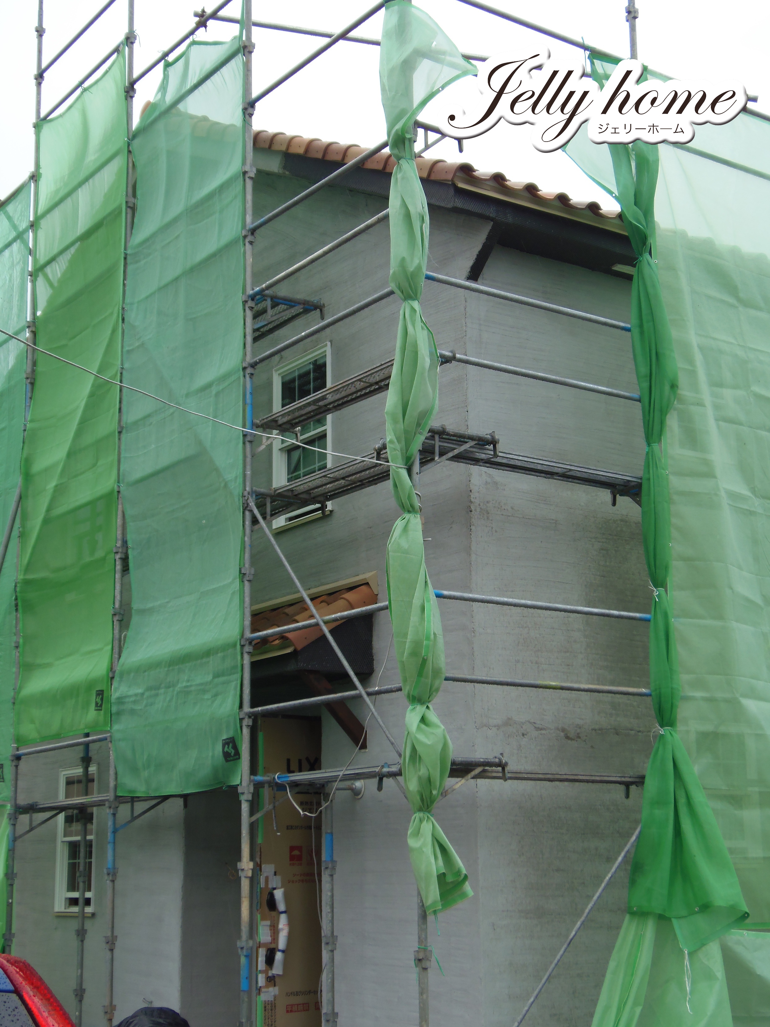 塗り壁の外壁は下地モルタルの施工中です。