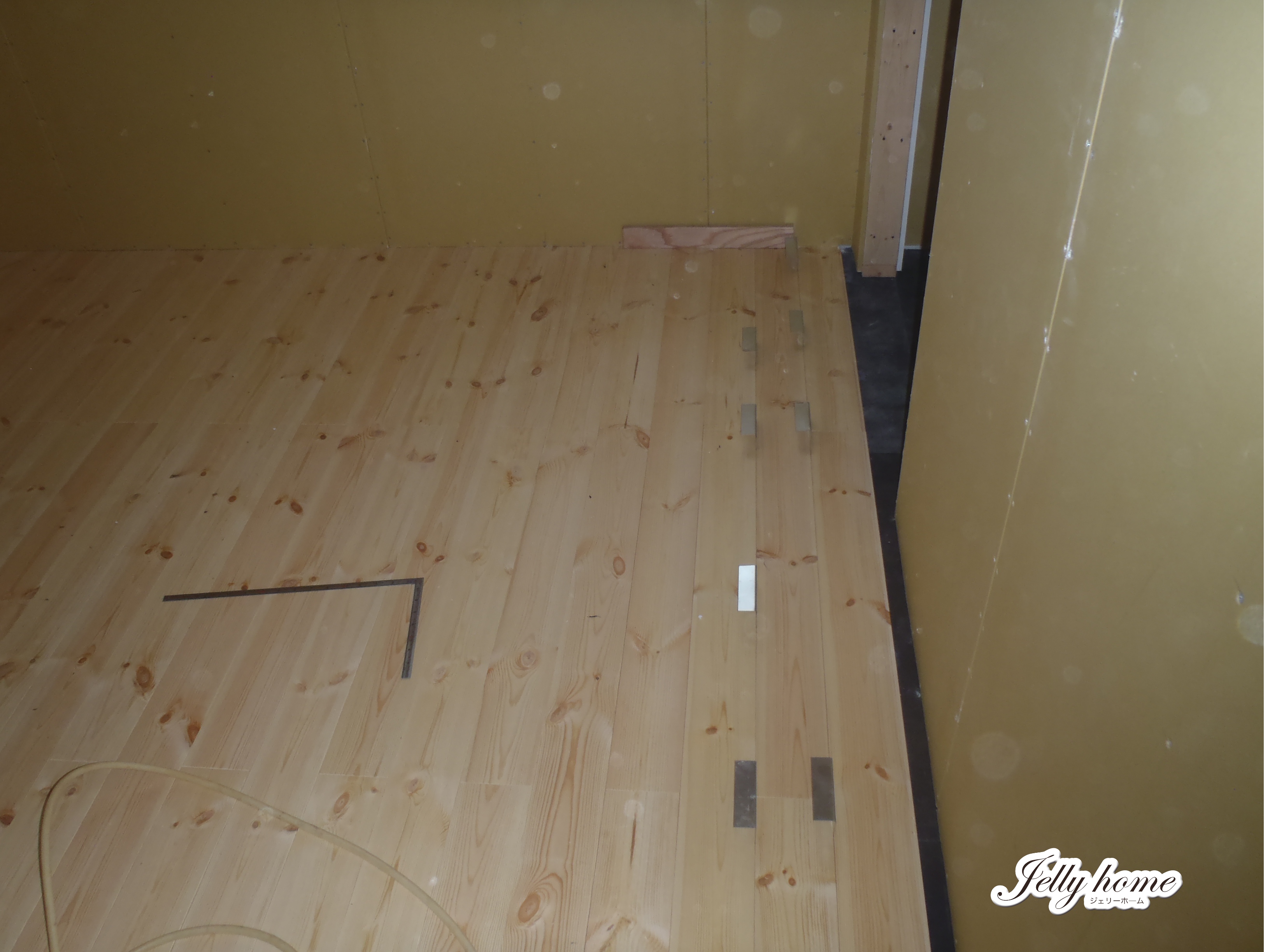 北欧スタイルの床材は無垢材のレッドパインを標準採用している。