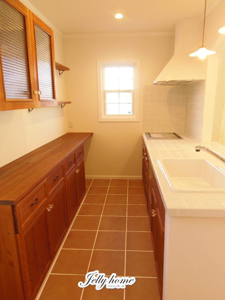 ↑手作りのキッチンや食器棚を見て、S様が一言。