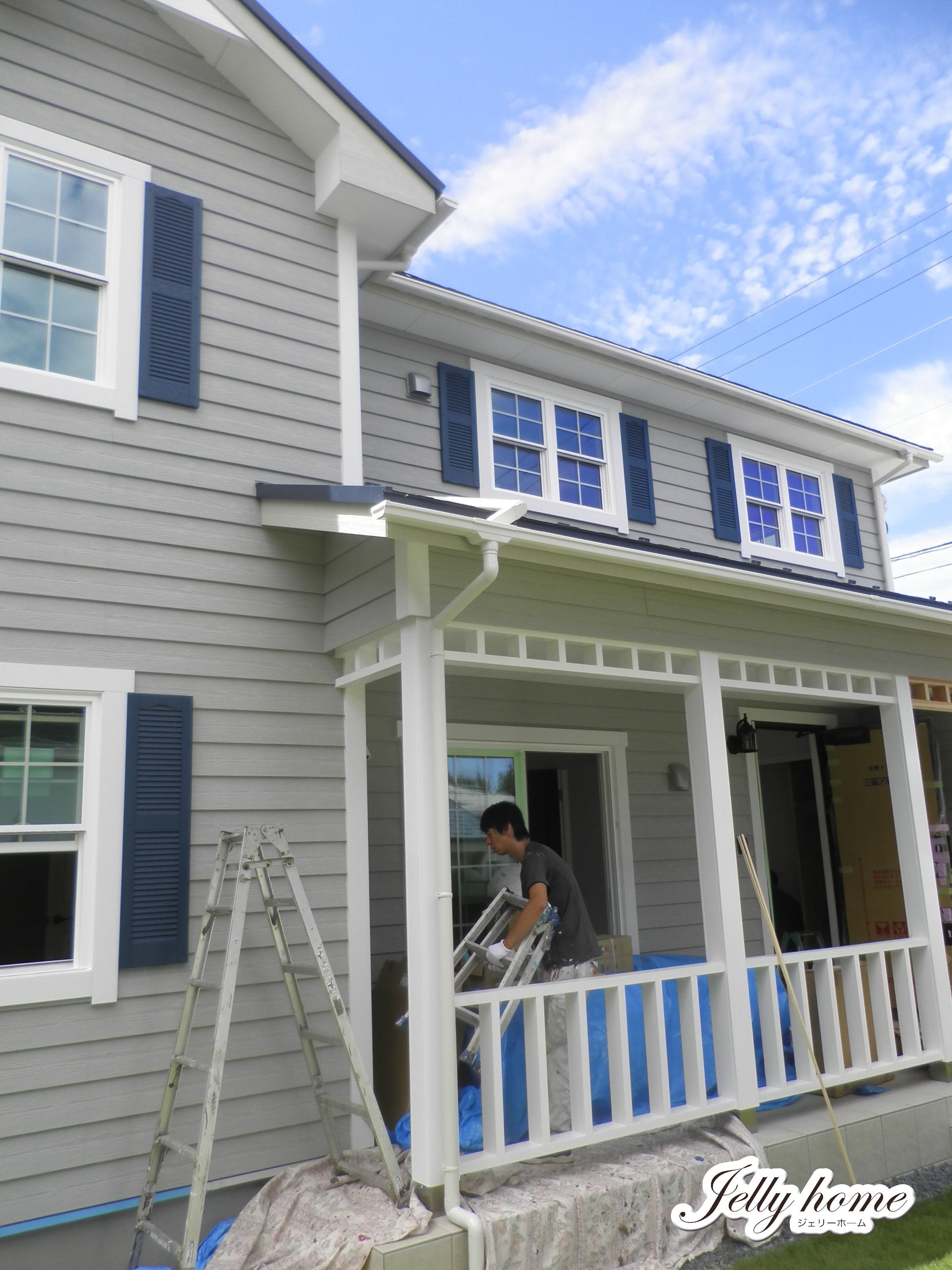 日本国のK様邸はカバードポーチ手摺りの塗装仕上げに入った。