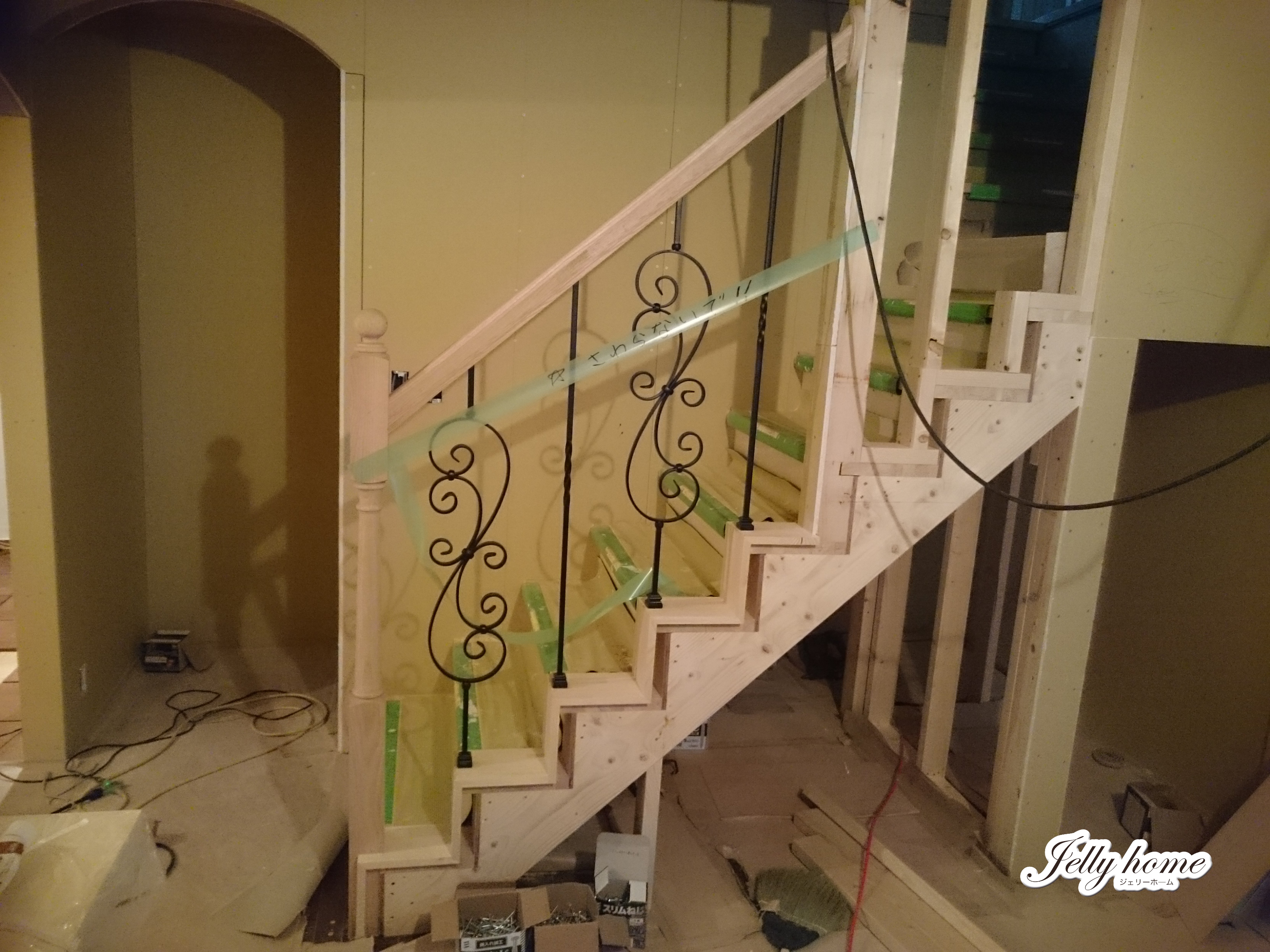 L.J Smithの階段手摺りの取付が完了したK様邸。