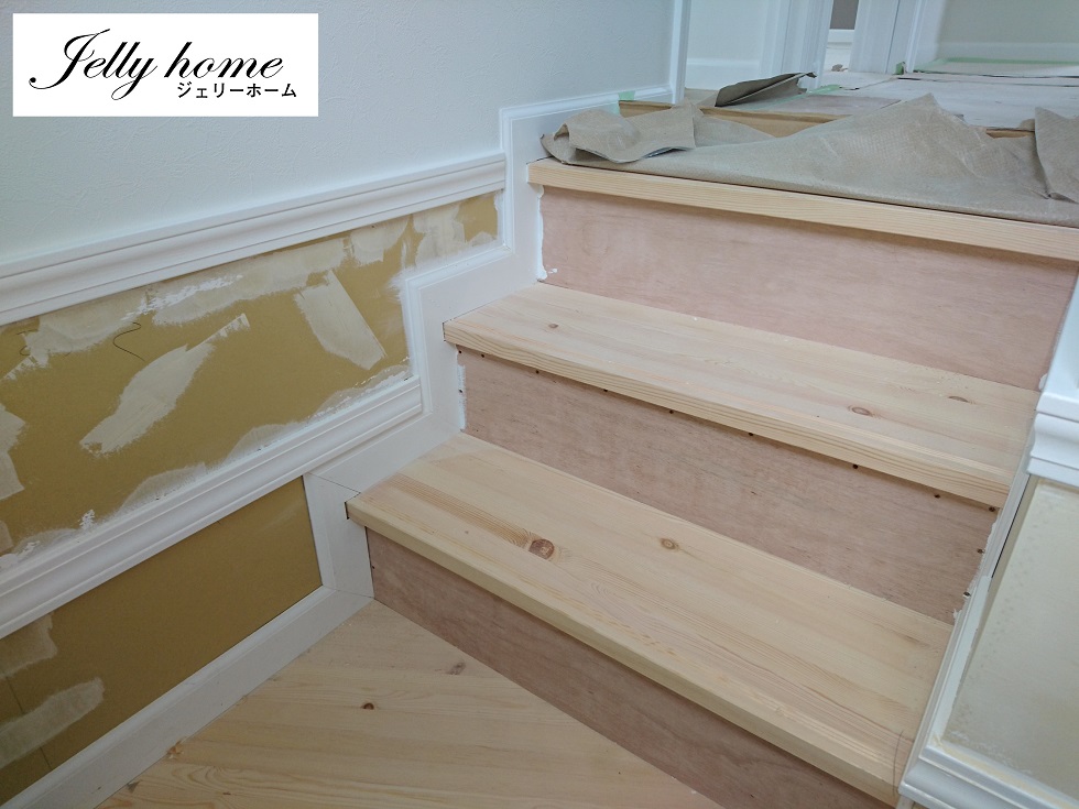 廊下から続く床巾木は階段部も形状なりに張っている。