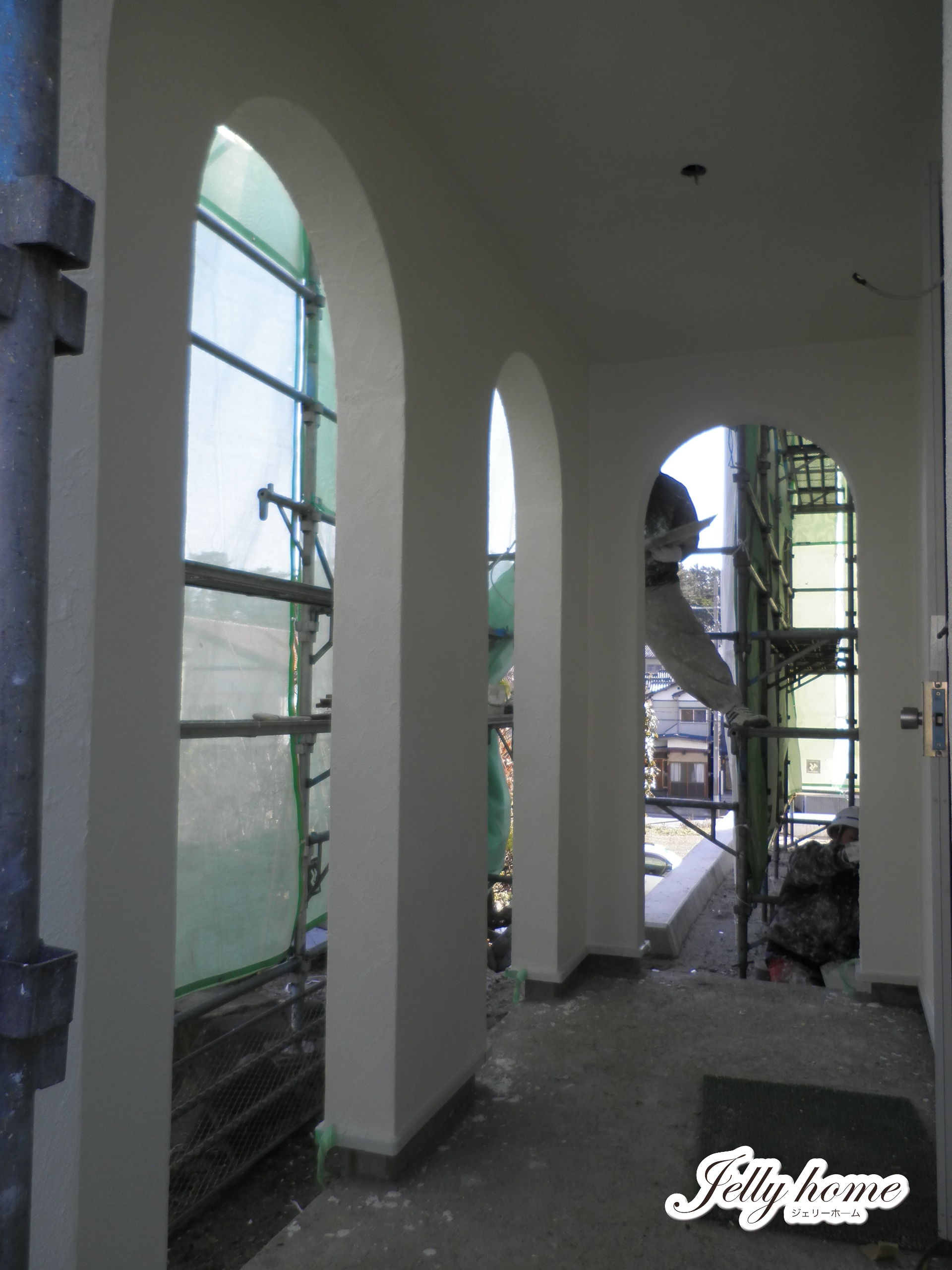 外壁の塗り壁工事ができあがり、