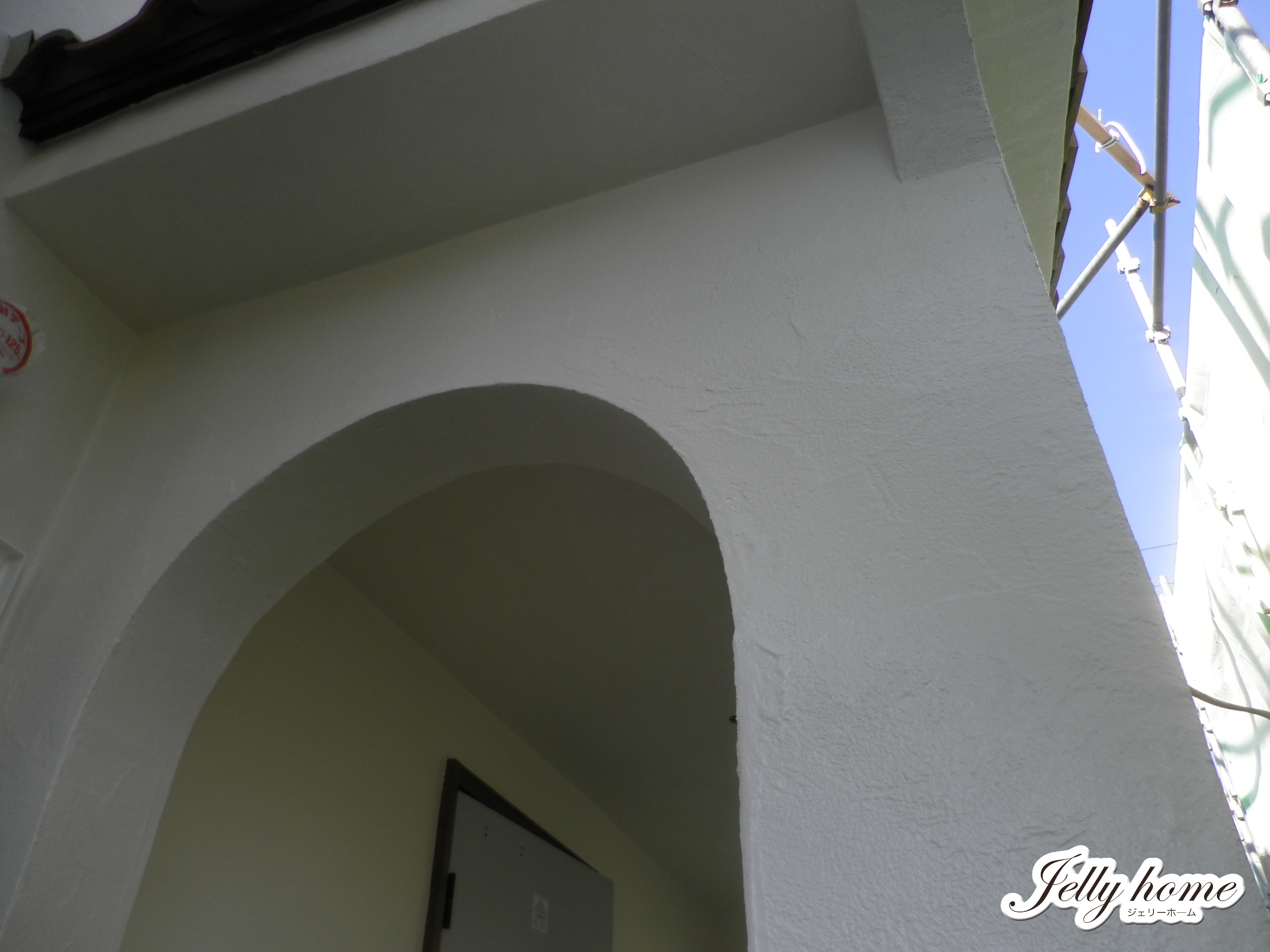 玄関ポーチのアーチ壁も生き生きとして見えて、
