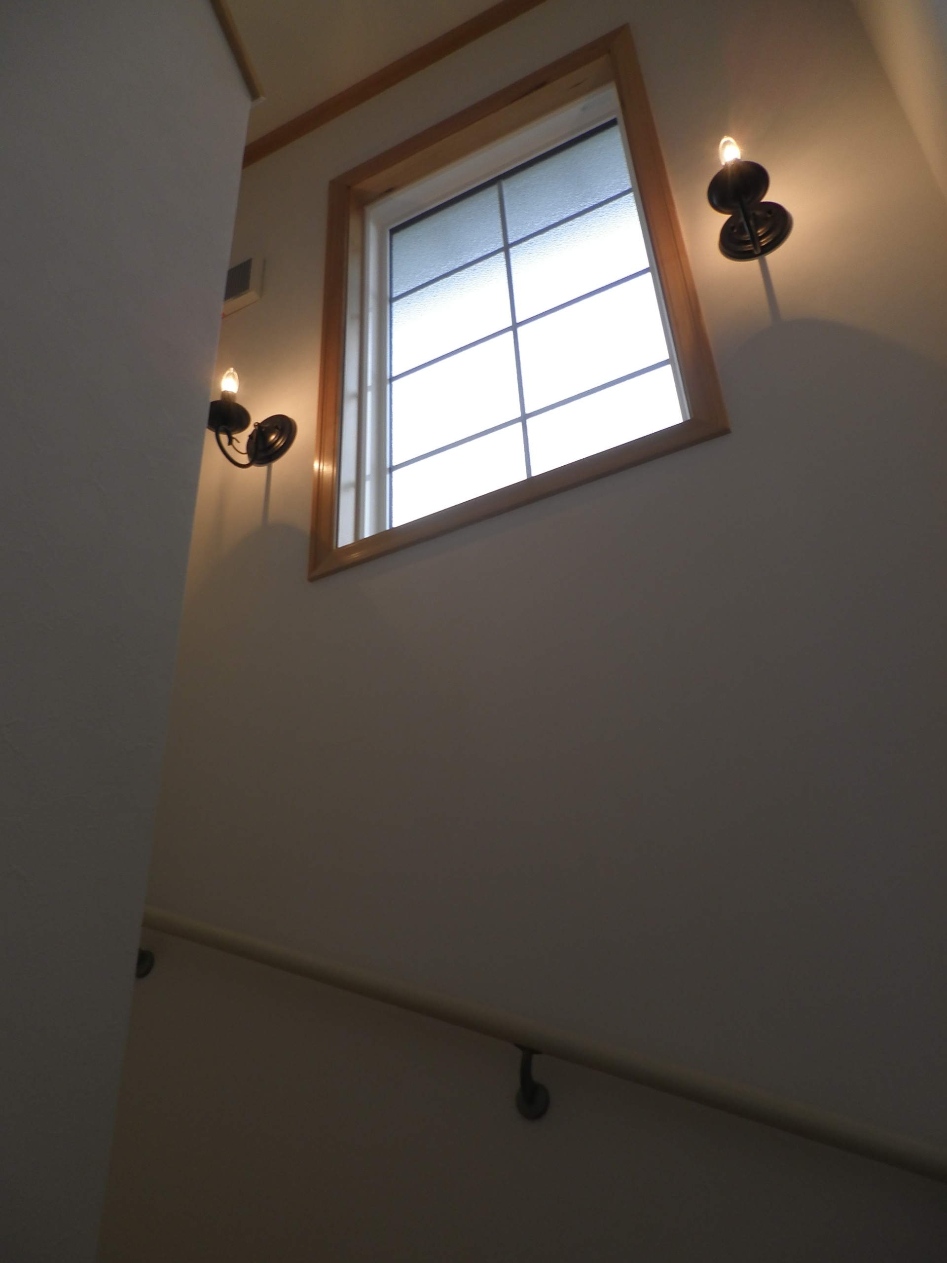 階段室の窓脇にはローソク型の照明器具を1対取り付けた。