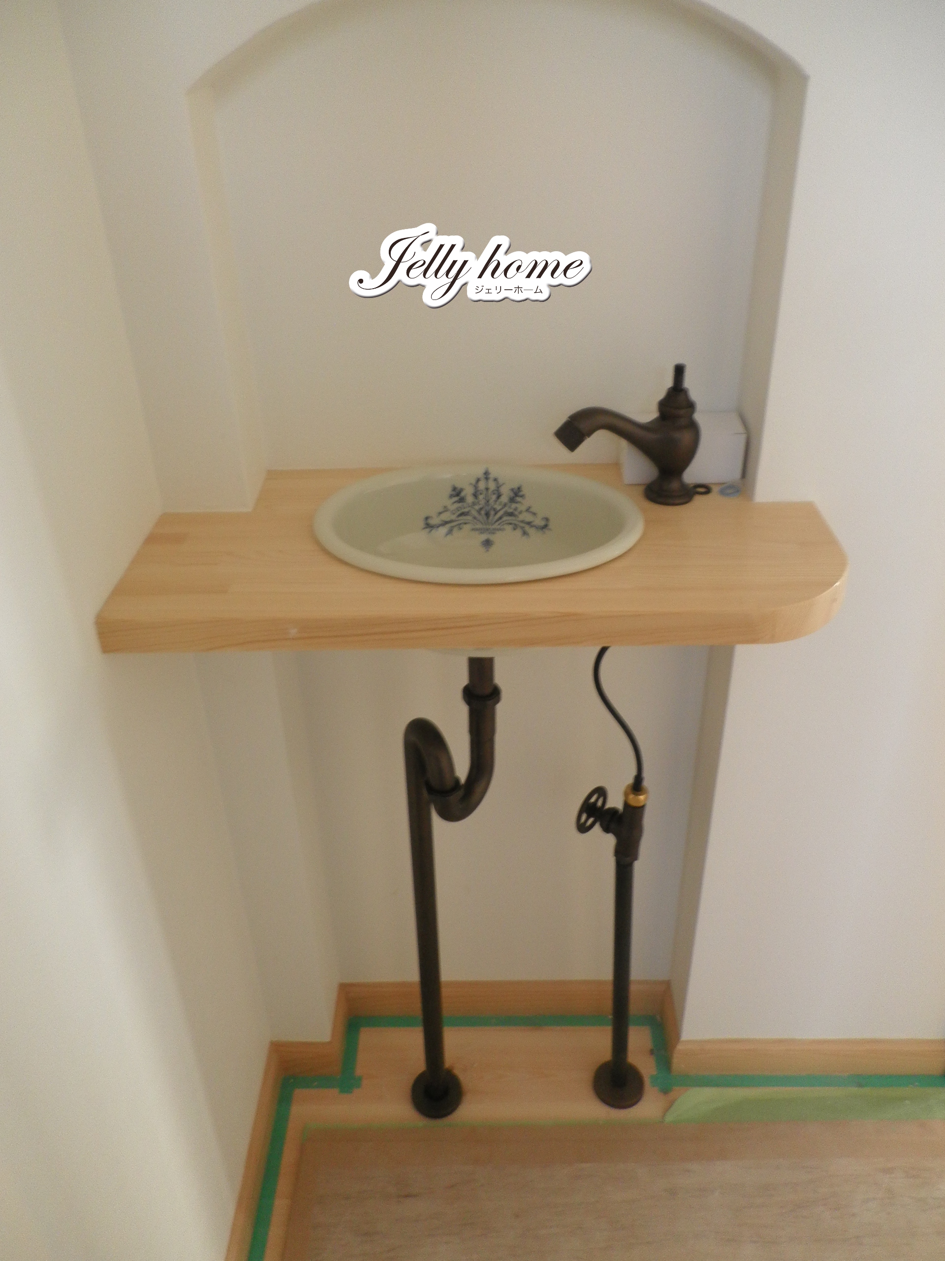 トイレ前に作った、当社で人気のオリジナル手洗い器です。(未完成)