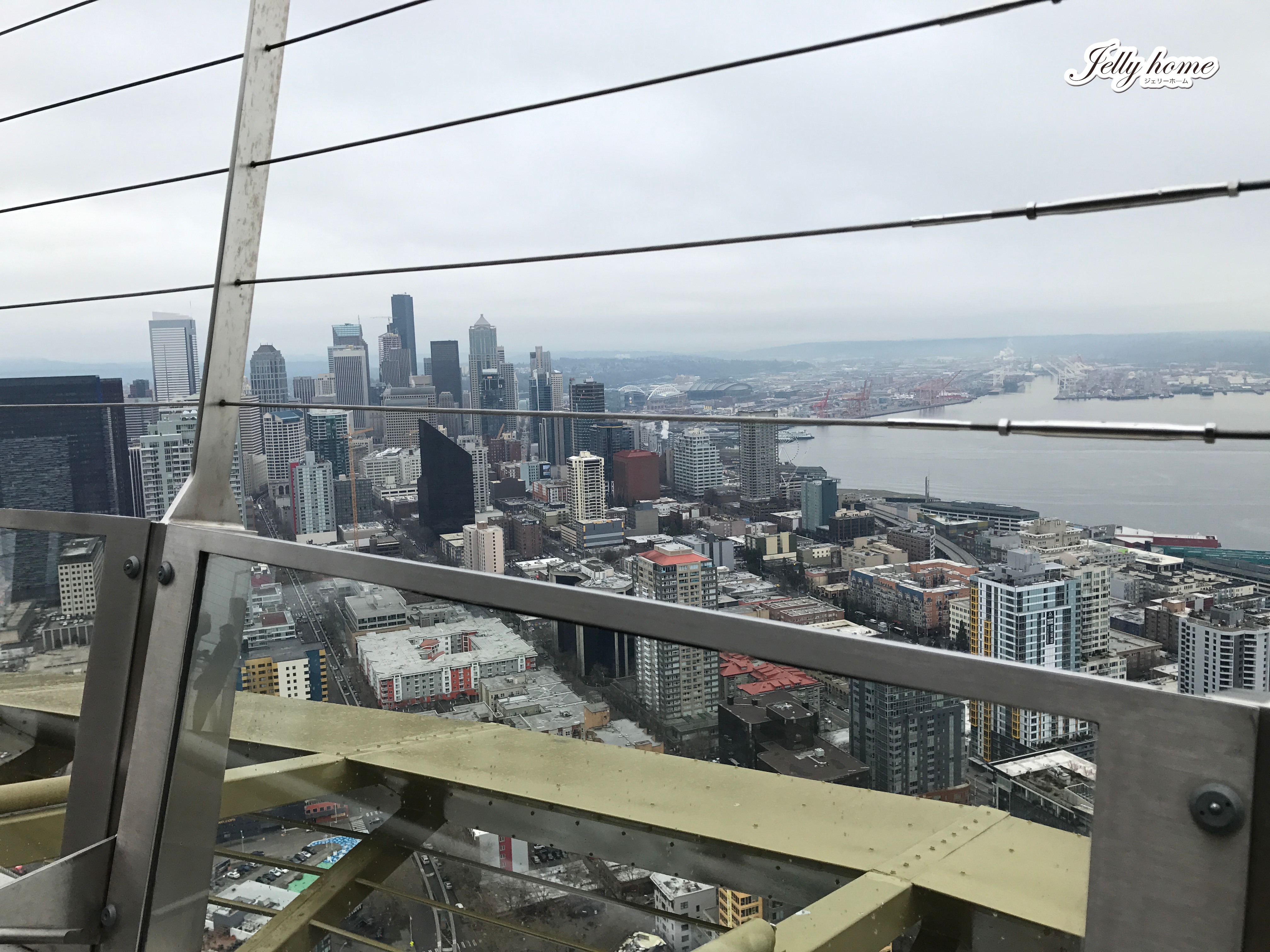 (↑ダウンタウンの高層ビル街とシアトル港。)