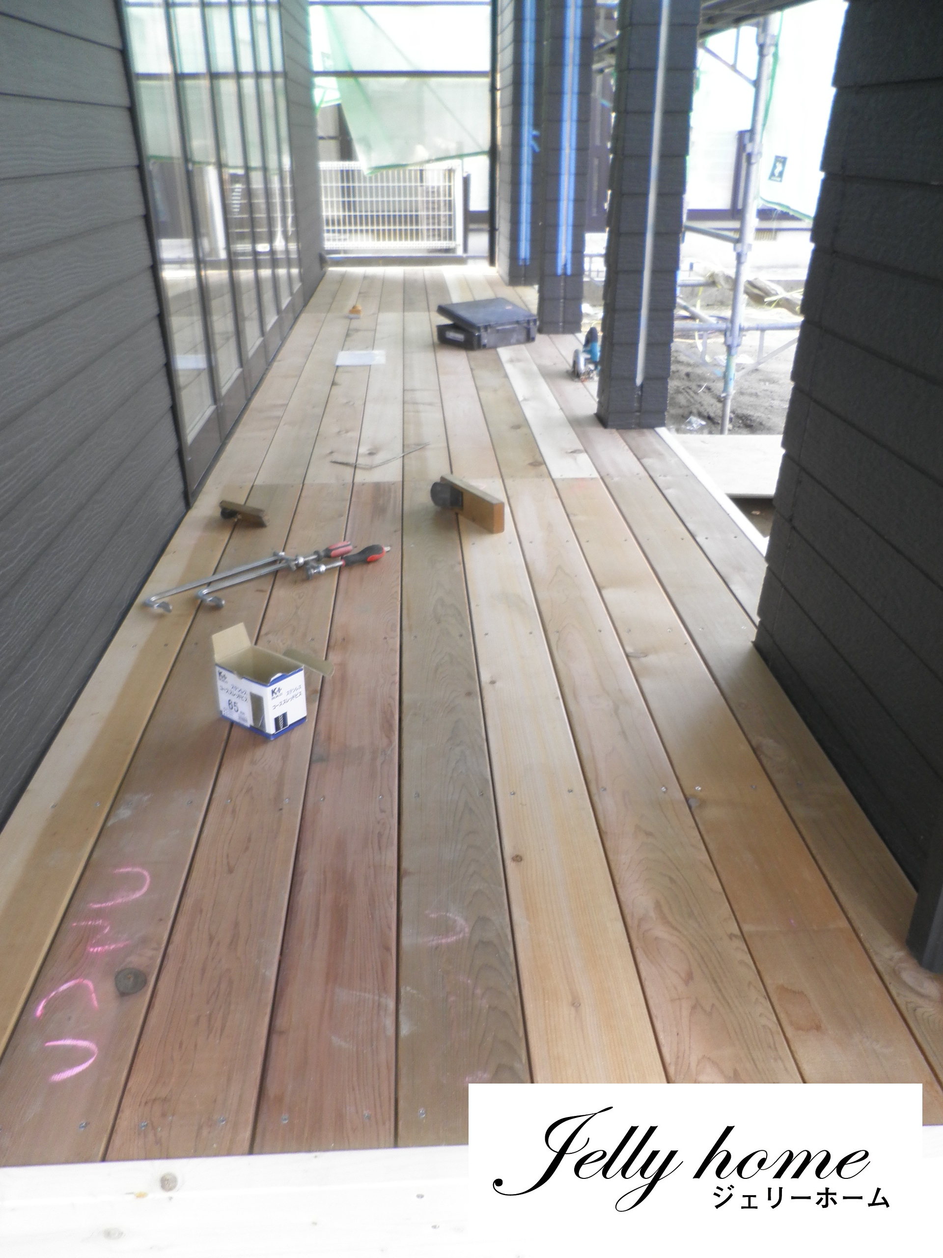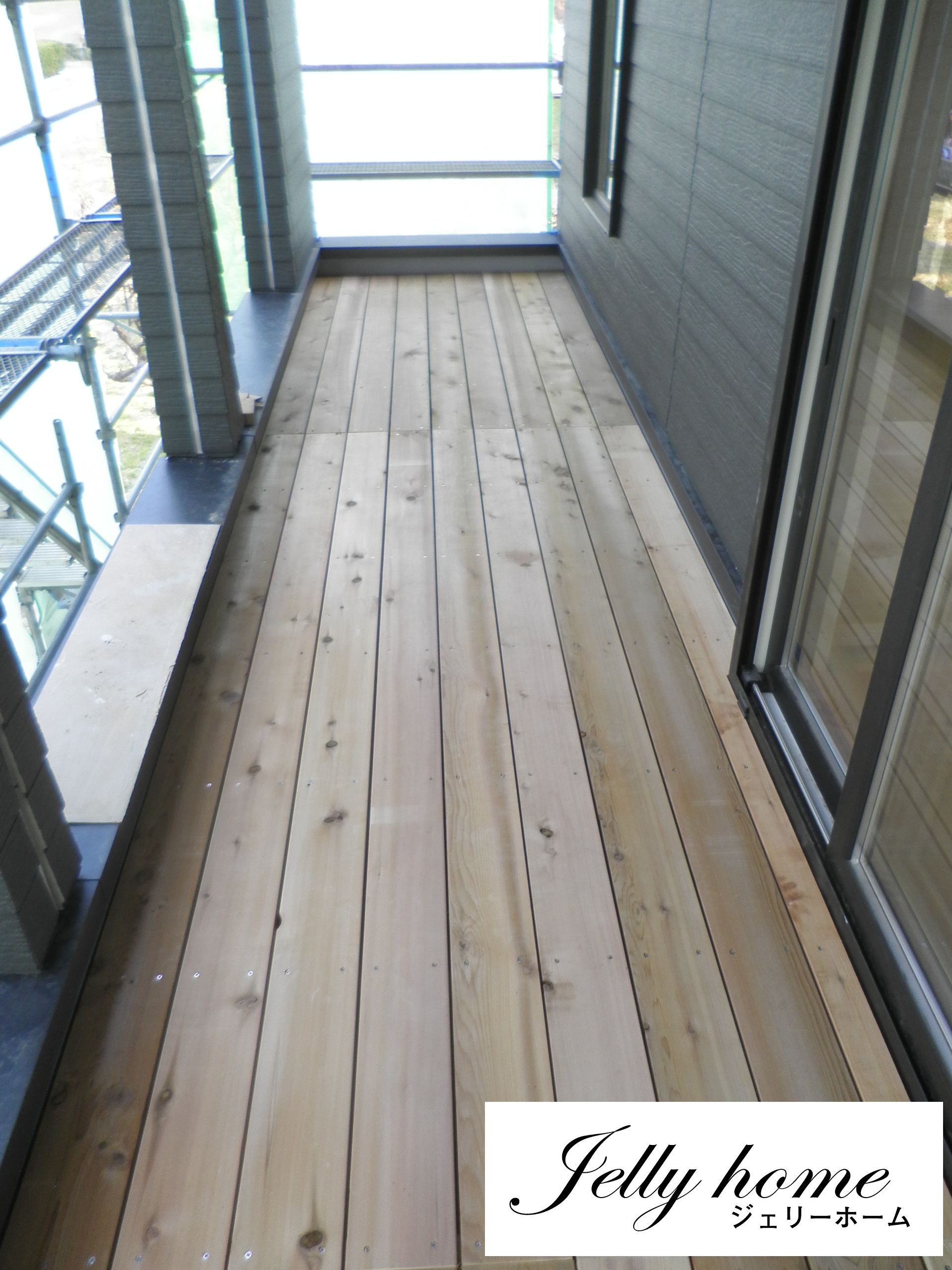 デッキとバルコニーの床はレッドシダー材を張り終えた。