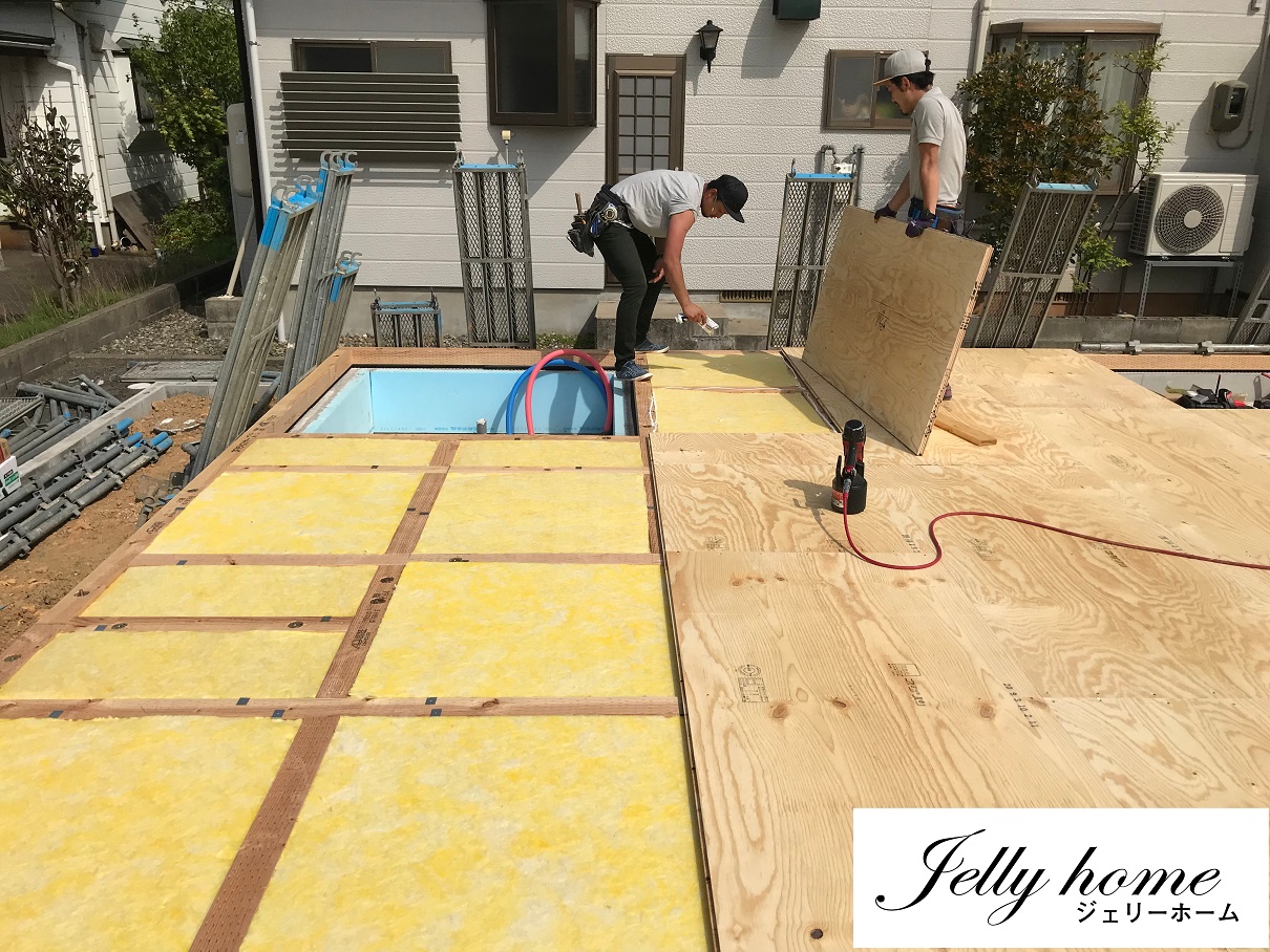 そして、床断熱材を詰めた後は、