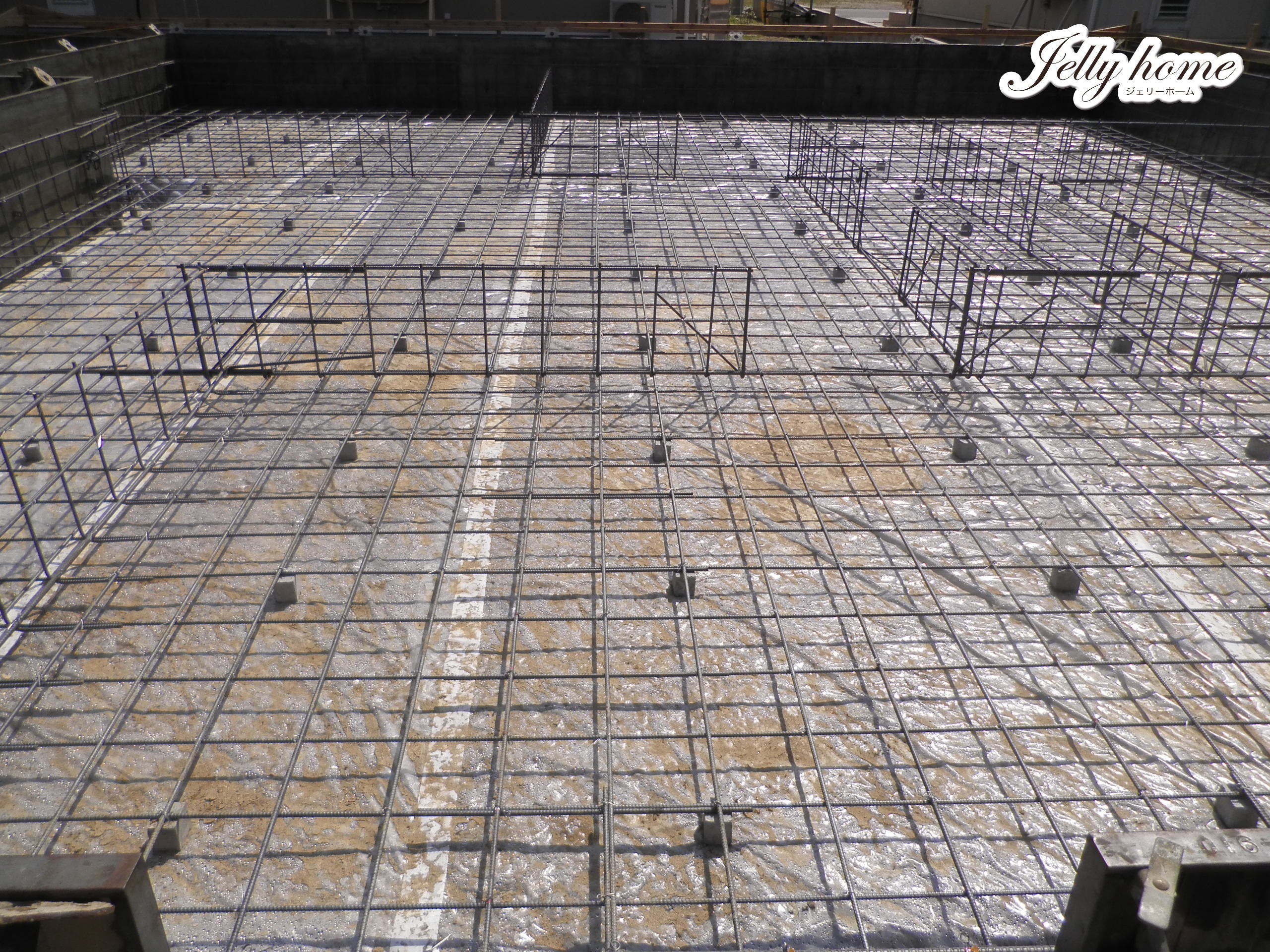 防湿シートが終わると、今度は鉄筋を配置する。