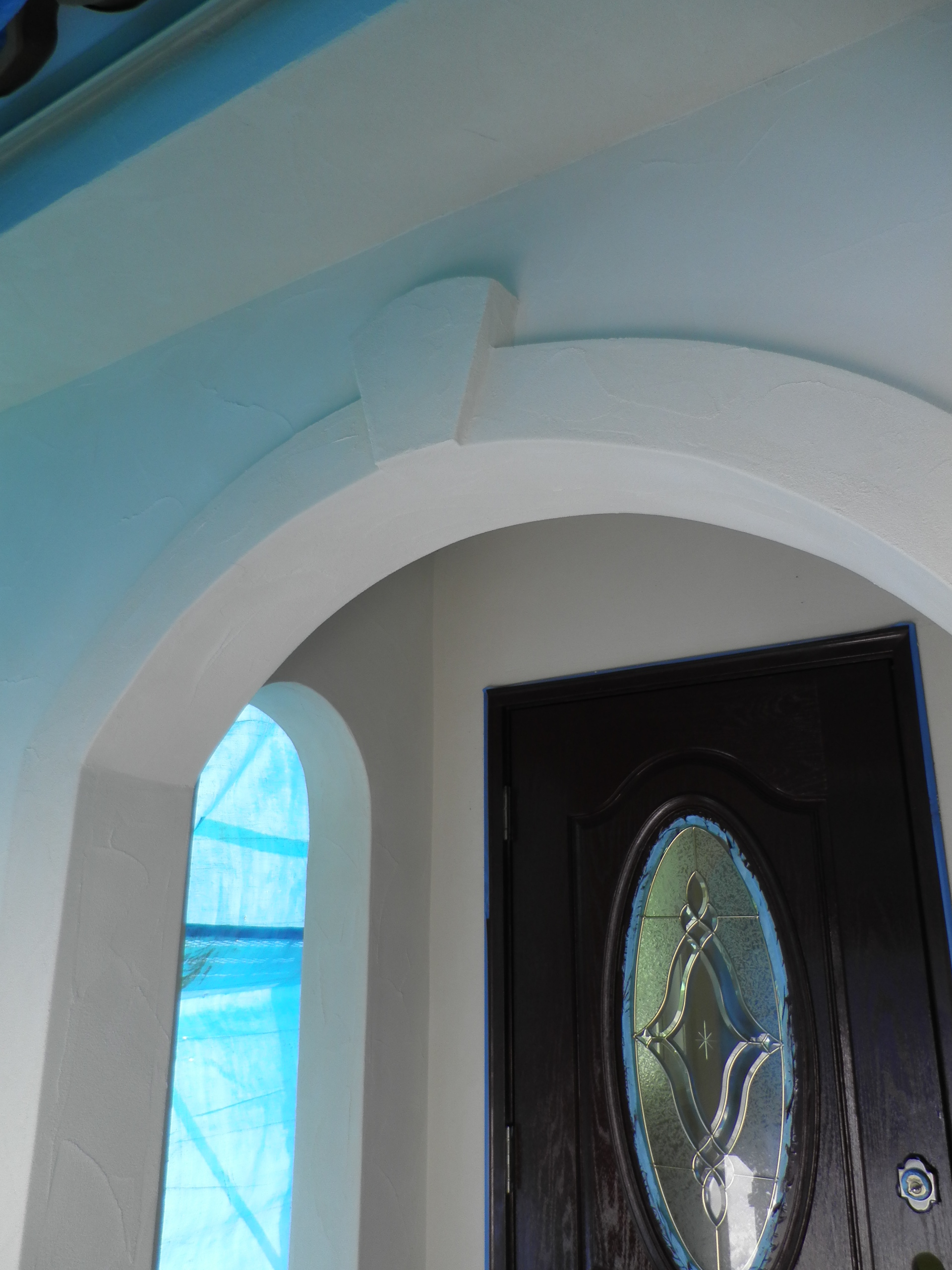 残っていた玄関周りのスタッコ塗りがほぼ終わり、ホッとしているところです。
