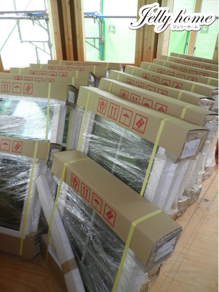 トリプルガラスの樹脂サッシも現場に届き、後は取り付けを待つばかりです。