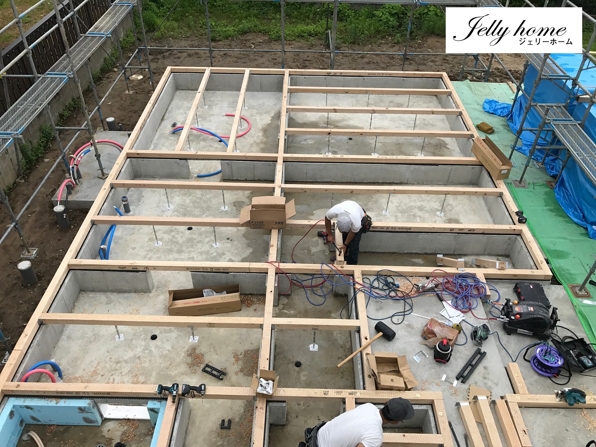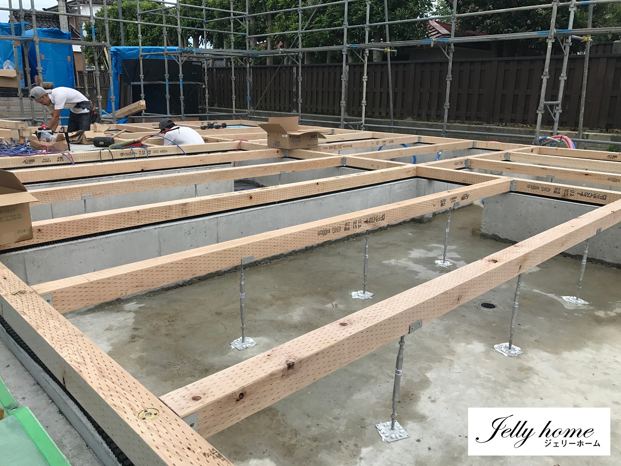 建て方が始まった小真木原の「フレンチスタイルの家」。