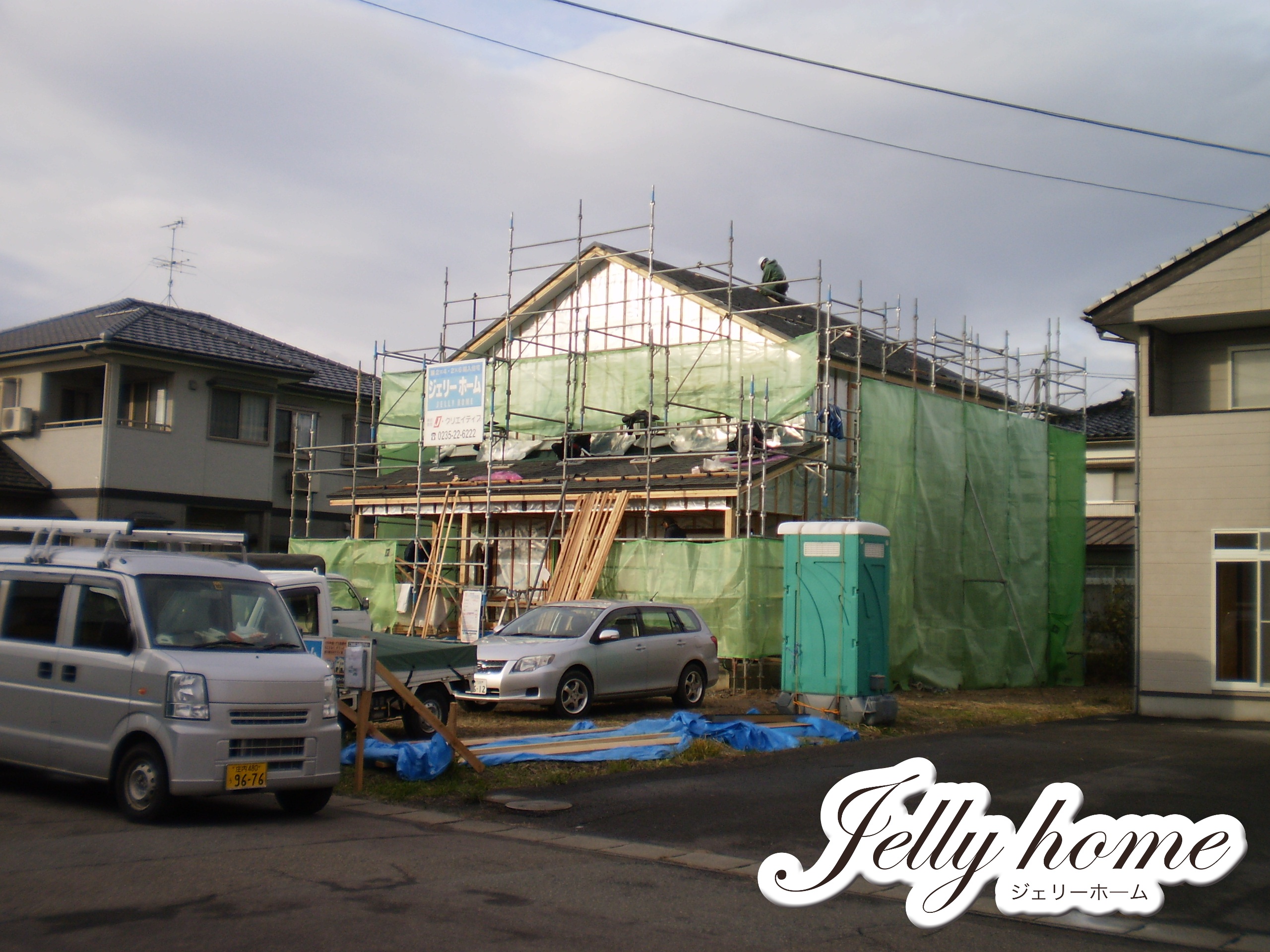 上棟も完了し、大体の形が現れてきたサーファーズハウスのような家。