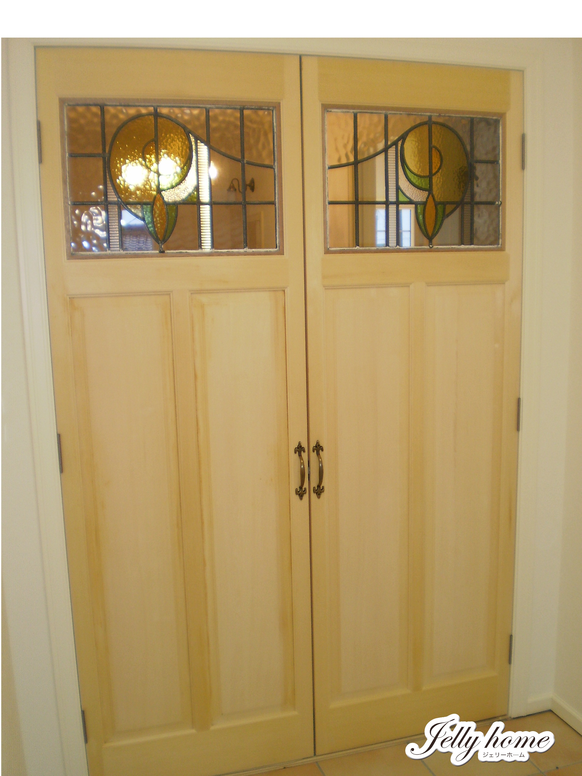 それから、施主様支給のステンドグラスをはめ込んだ造作ドア。
