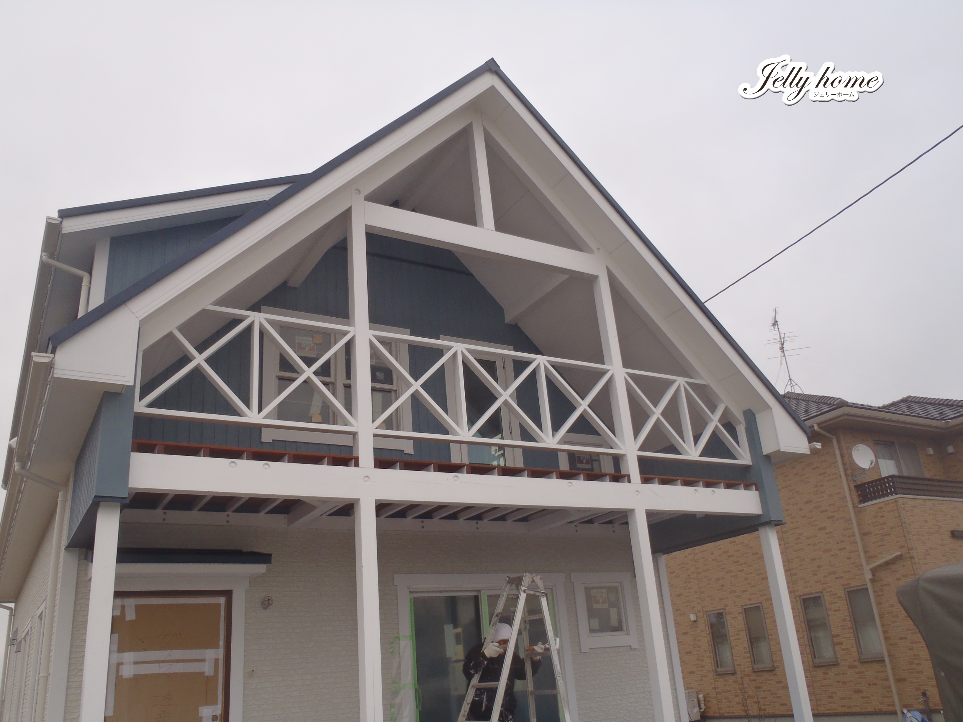 見せ場の正面バルコニーとウッドデッキには、かなりの労力を費やした。