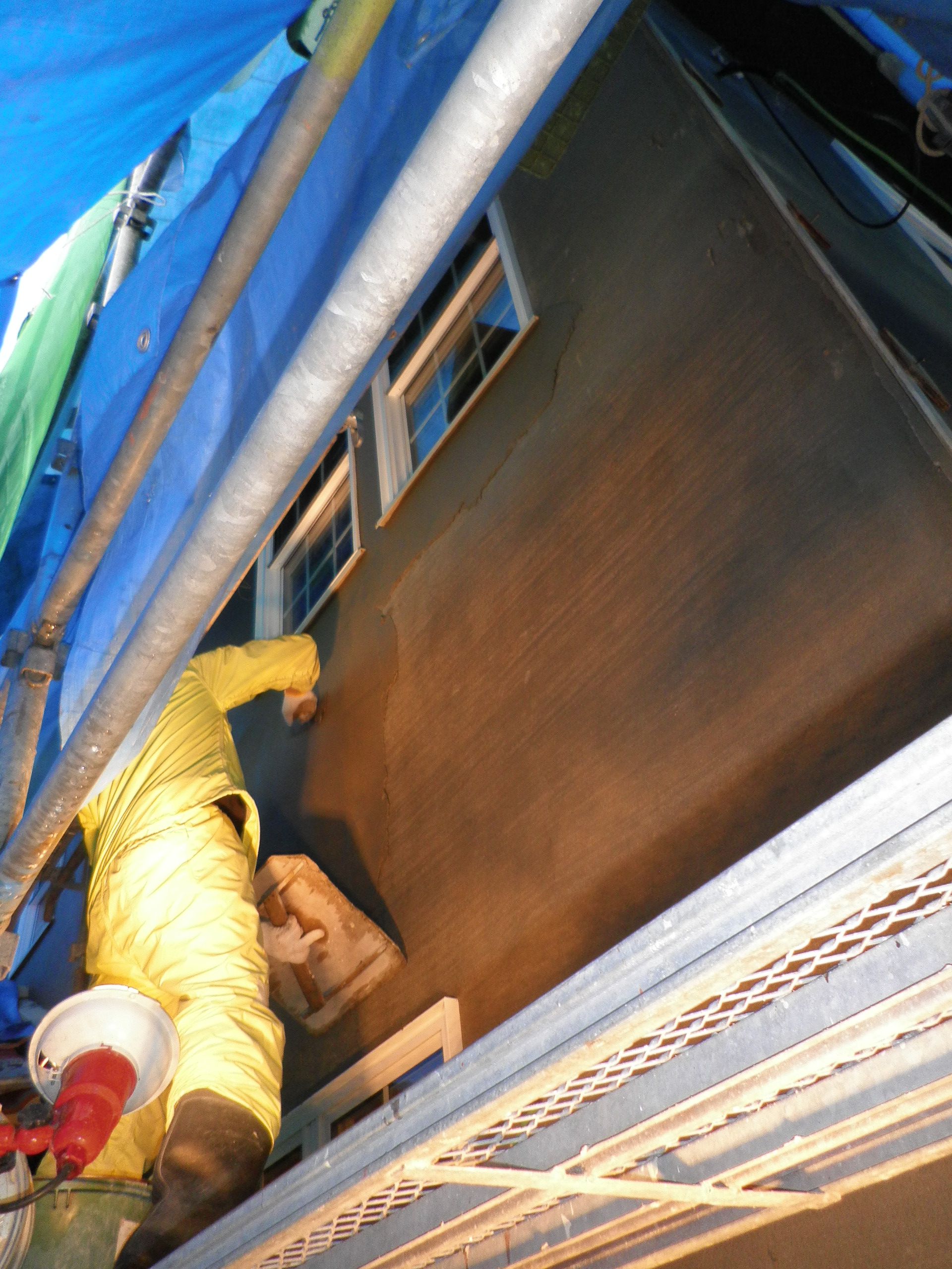 完了間近のモルタル壁