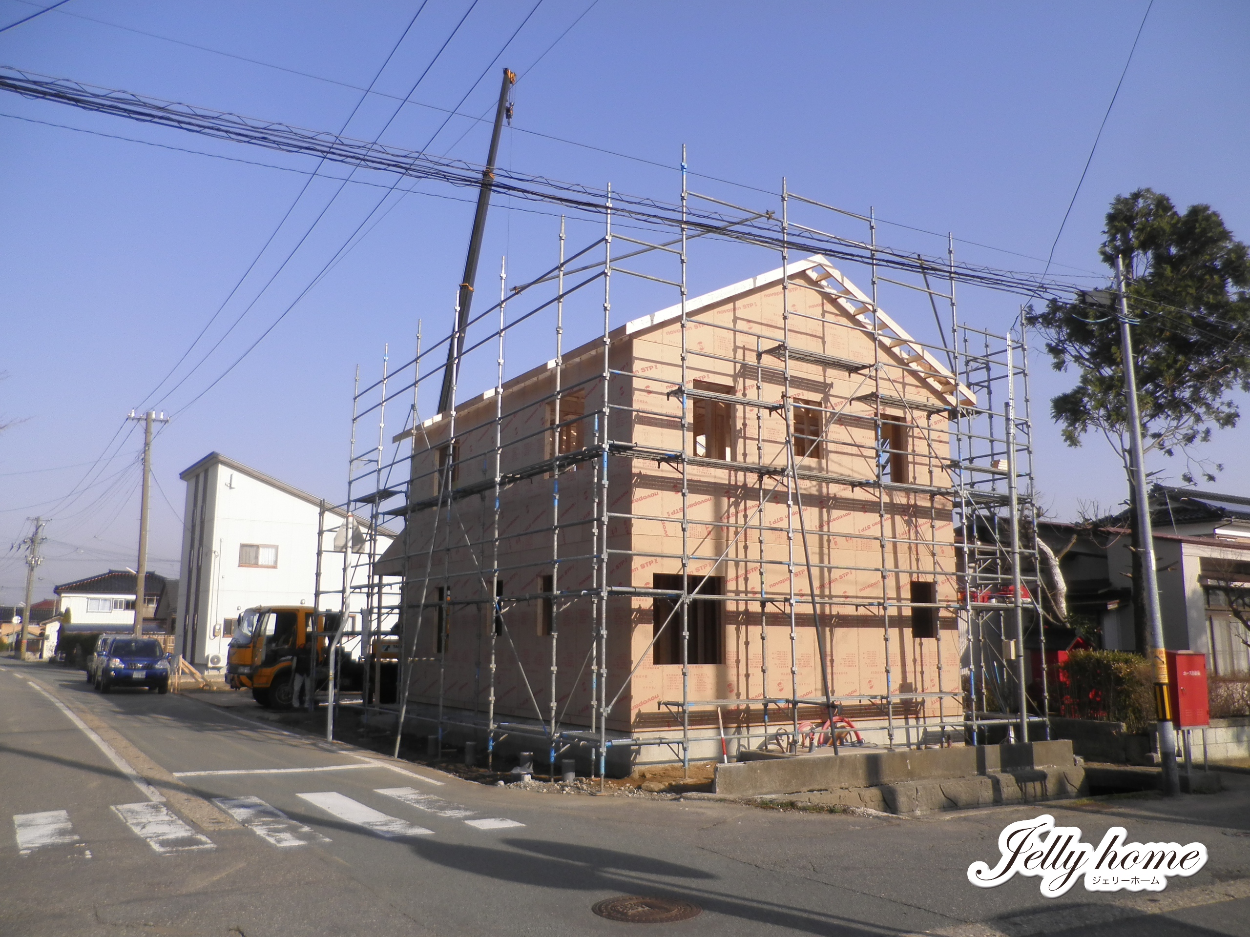 今日は2階壁を取り付けて、屋根の垂木まで上がった。