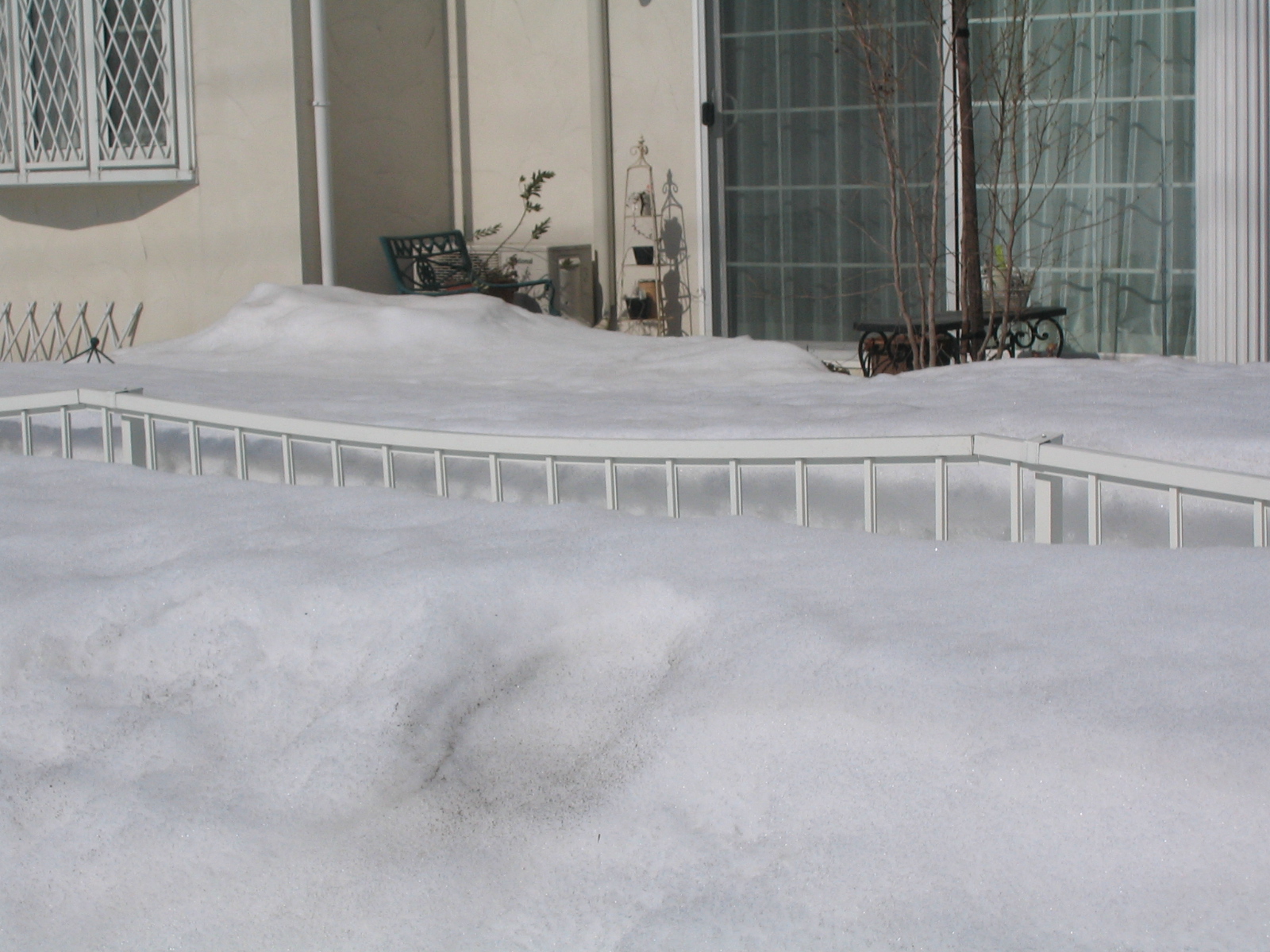 雪の重みでフェンスが曲がってしまうので注意して下さい、